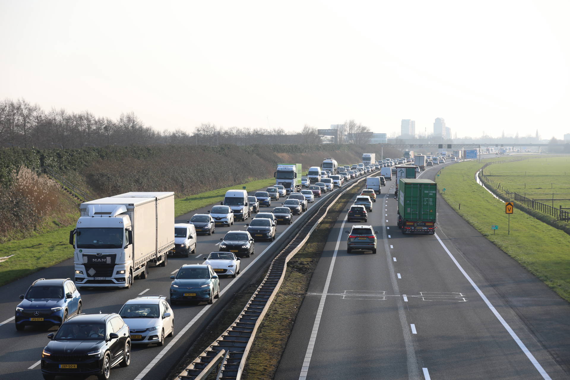 Kop-staartbotsing op snelweg veroorzaakt opnieuw kilometers file, bestuurder gewond