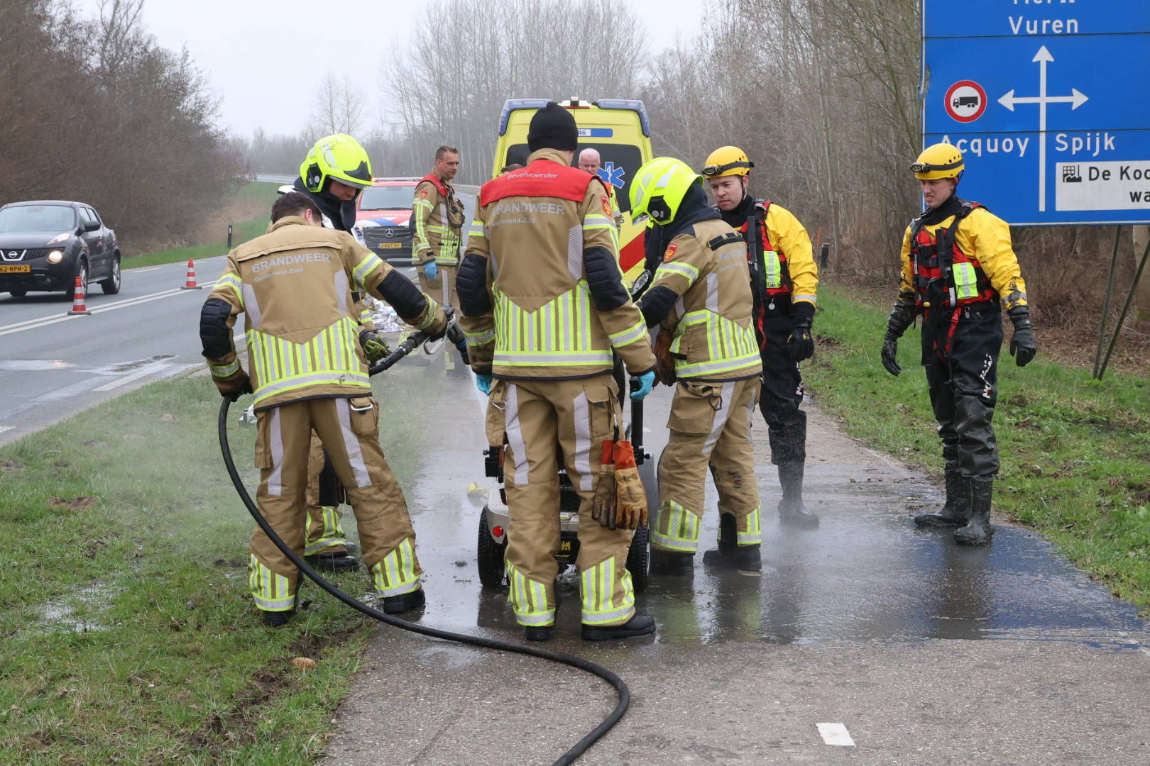 HEUKELUM – Aan de Zeiving in Vuren is zaterdag een scootmobiel te water geraakt. De melding kwam binnen in eerste instantie als een voertuig te water.