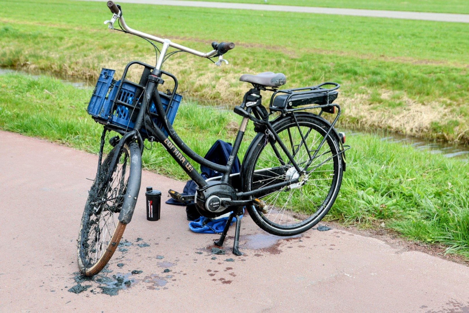 Omstanders halen fietser uit sloot na val met fiets