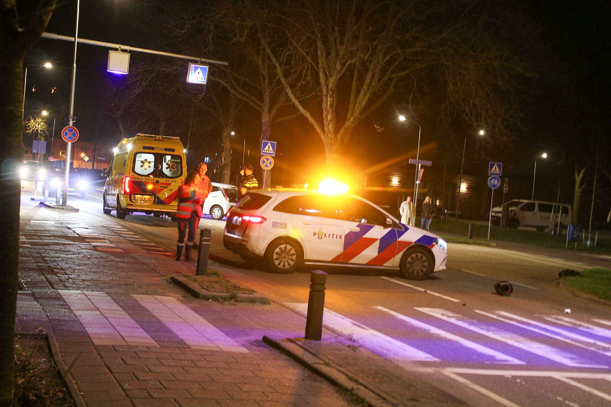 VOORTHUIZEN – Vrijdagavond zijn bij een aanrijding op de Rembrandtstraat in Voorthuizen een motorrijder en een fietser gewond geraakt.
