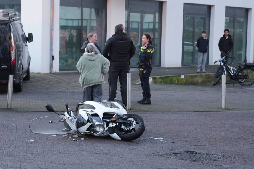 Het ongeval gebeurde rond 18.00 uur. Door de botsing kwam de scooterrijder midden op de kruising terecht. Ambulancepersoneel heeft het slachtoffer daar behandeld.