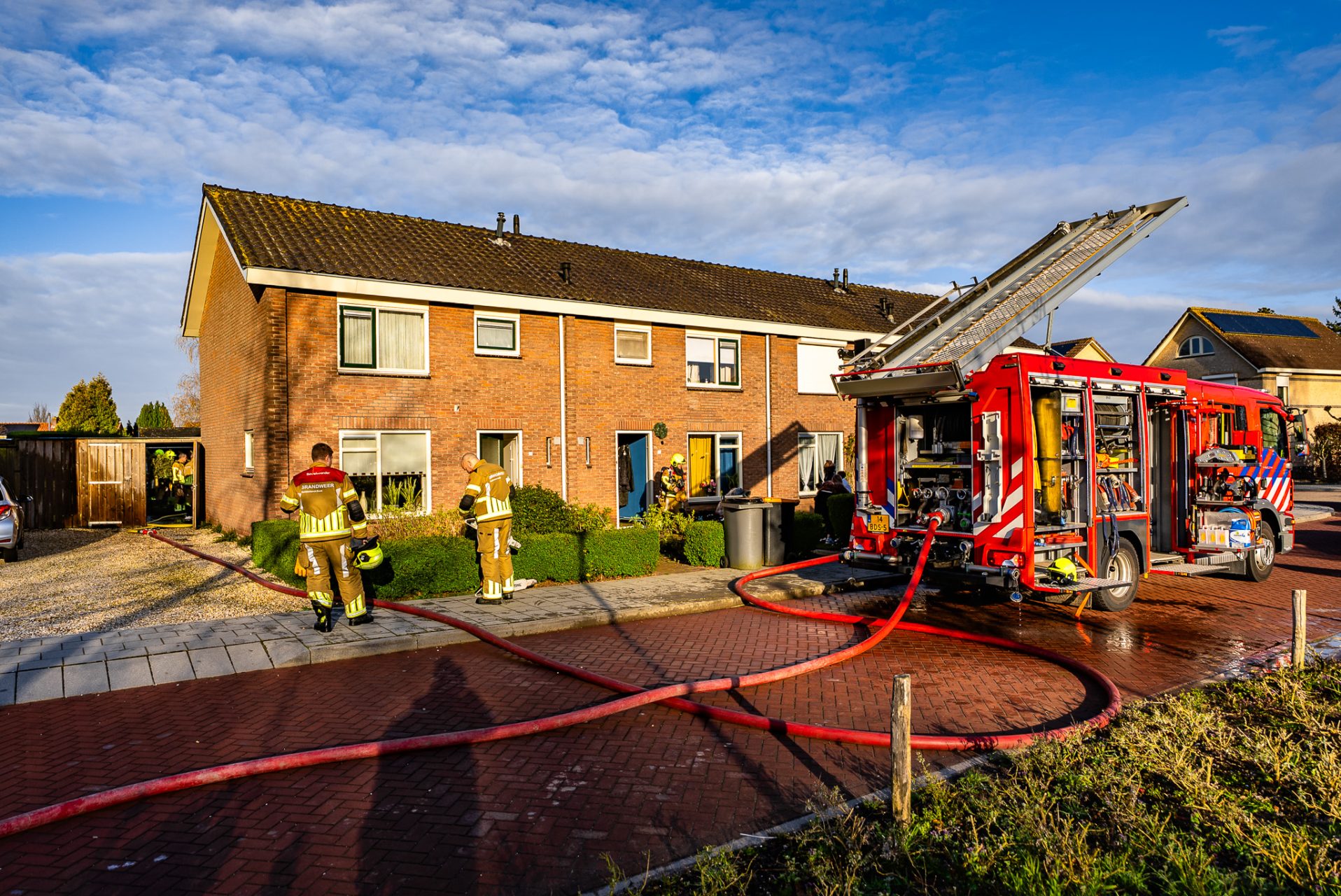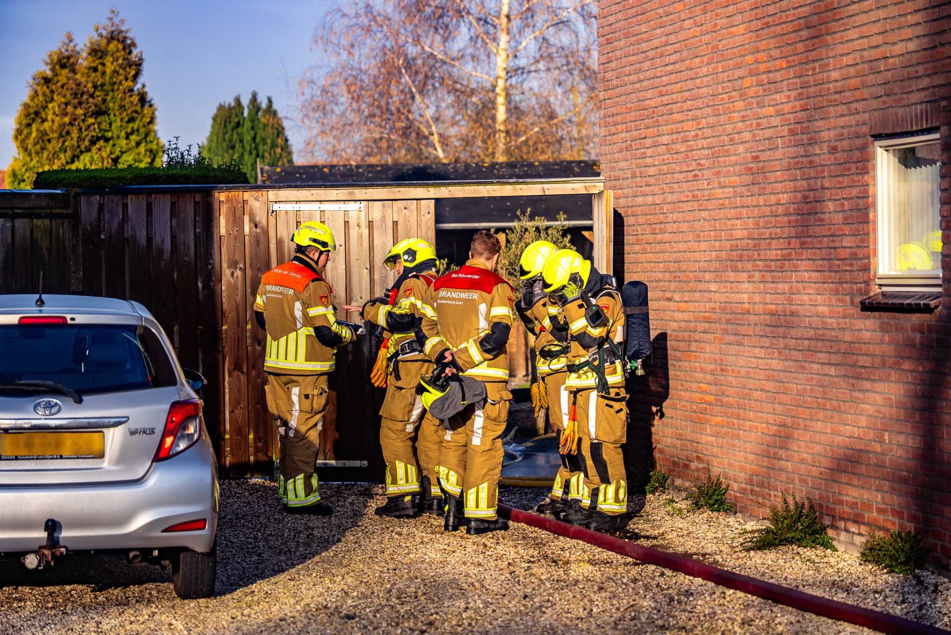 De brandweer schaalde na enkele minuten op naar middelbrand. Bij aankomst stond de achterkant van de schuur al in brand. Door snel ingrijpen kon worden voorkomen dat het vuur oversloeg naar andere delen van het perceel.