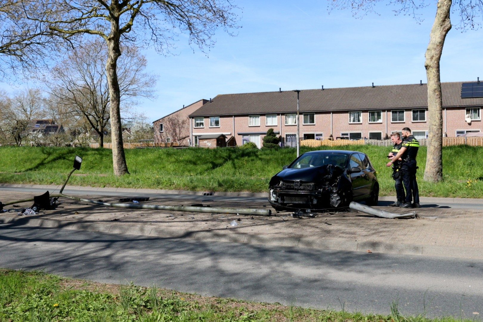 Auto botst tegen lantaarnpaal en raakt total loss