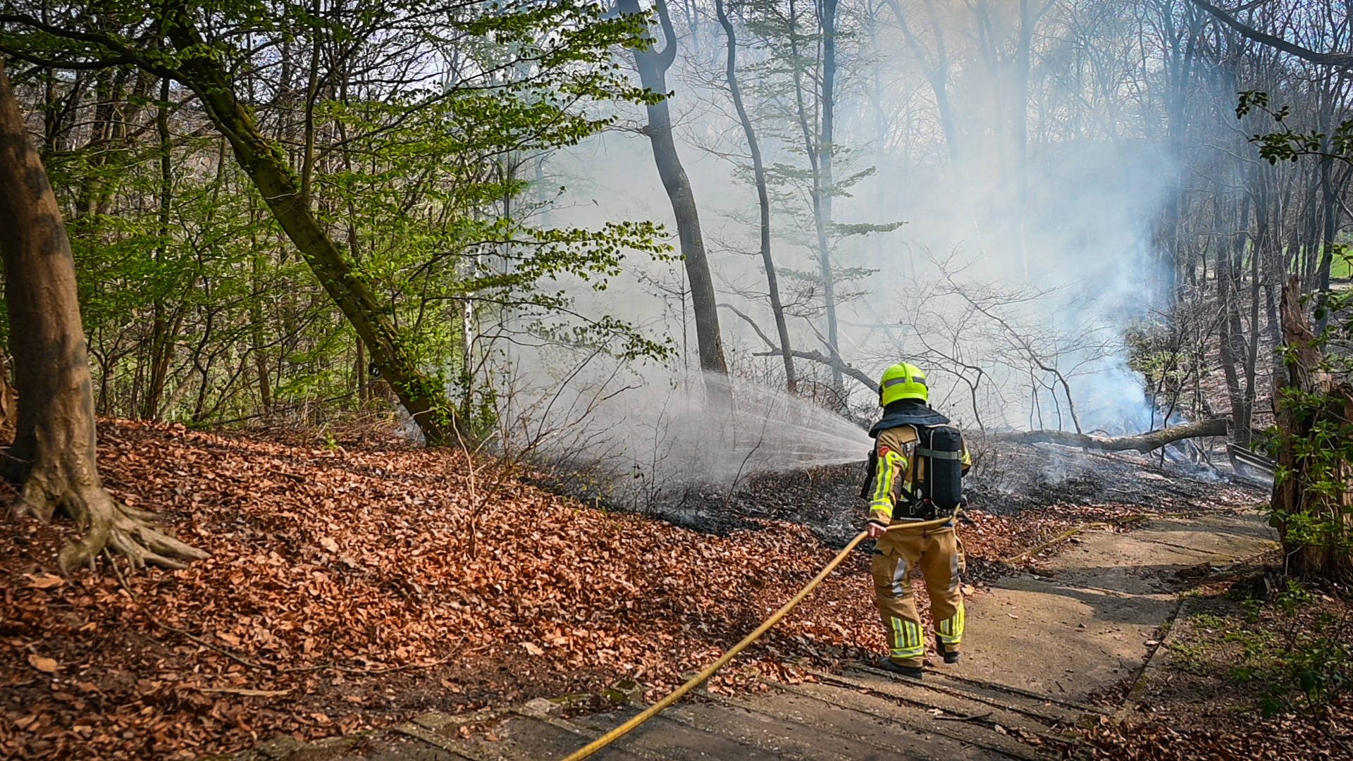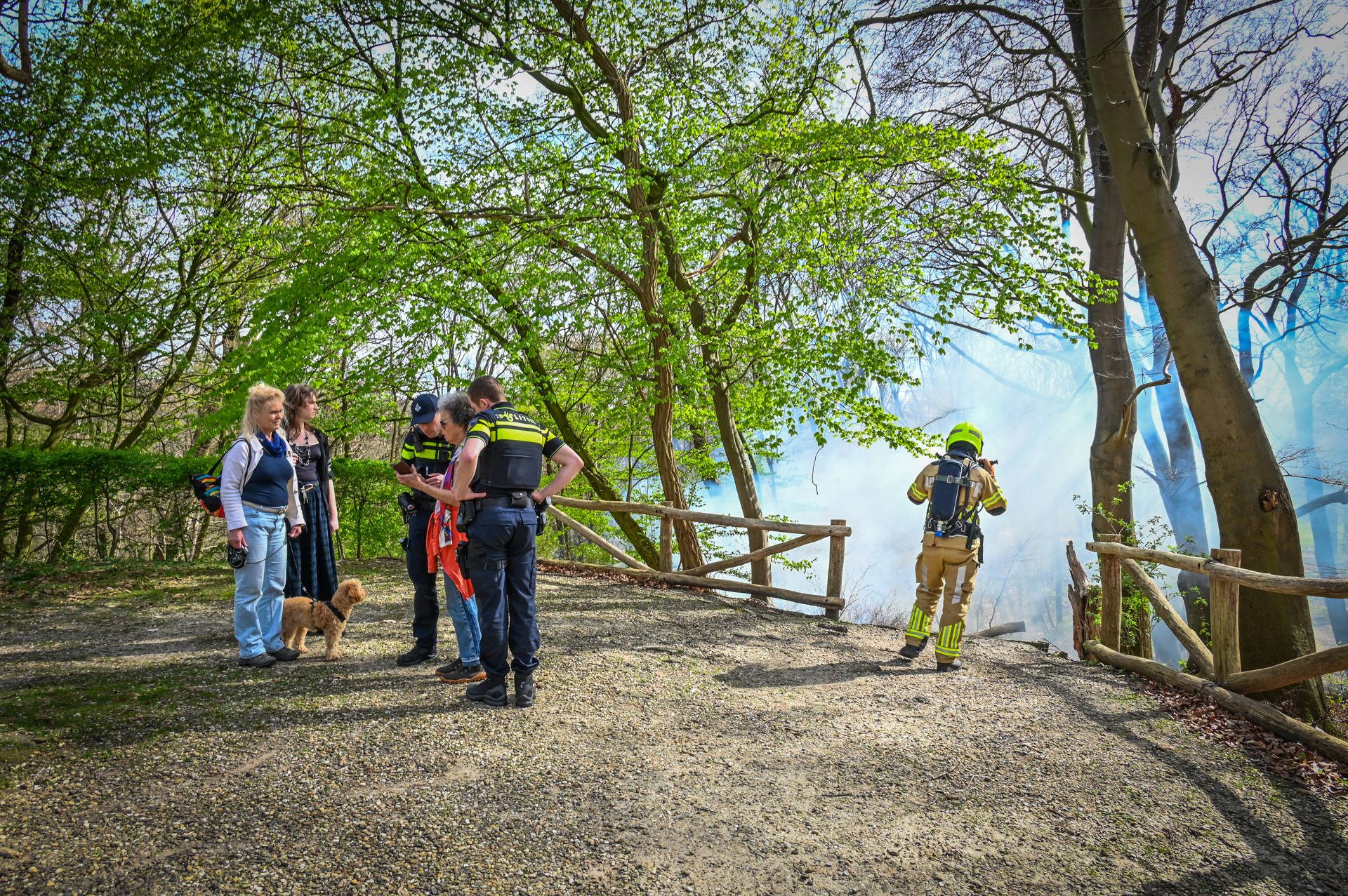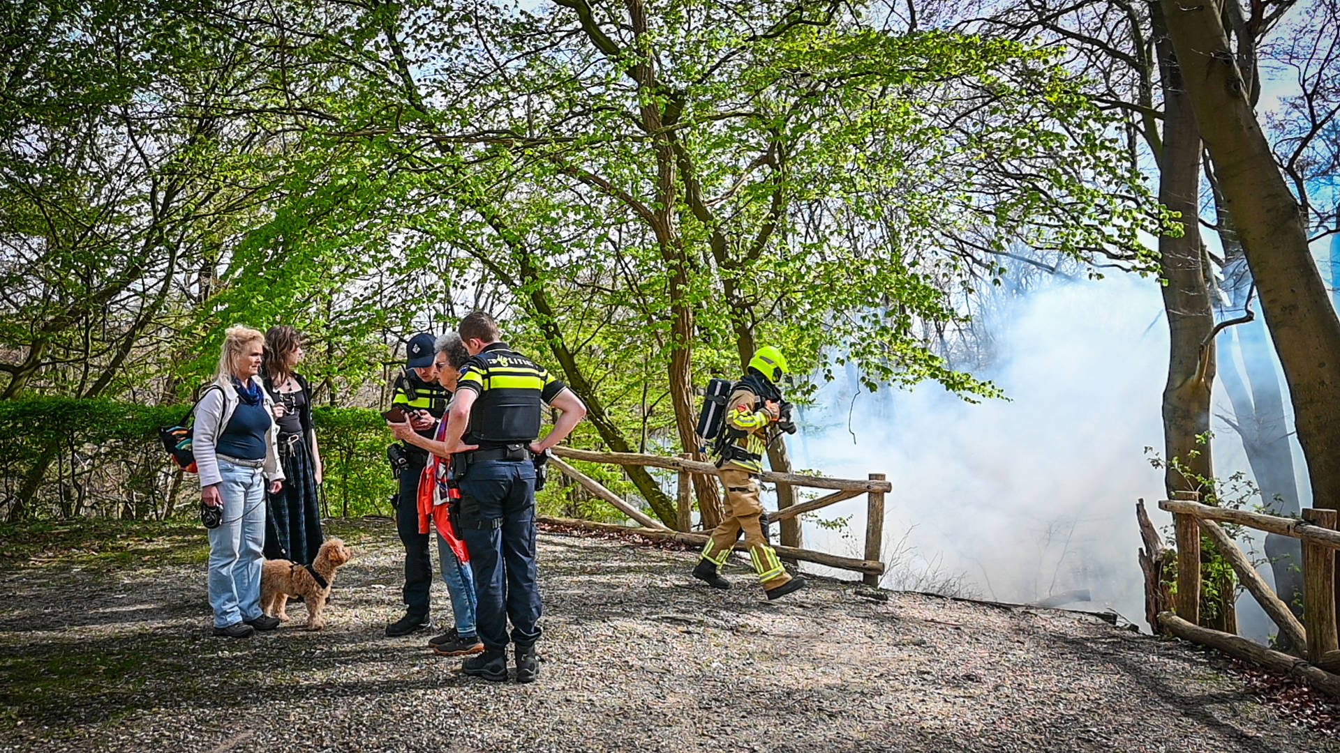 Rond 15:45 uur zagen wandelaars dat de jongens bij de hut bezig waren. Even later merkten zij dat de jongens paniekerig in de bladeren stonden te stampen om het vuur uit te trappen. Door een windvlaag breidde de brand zich echter snel uit, waarna de jongens op de fiets via de Bosweg vertrokken.