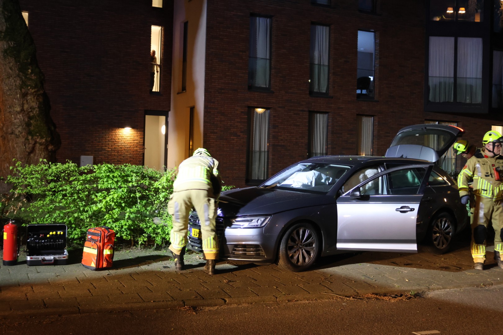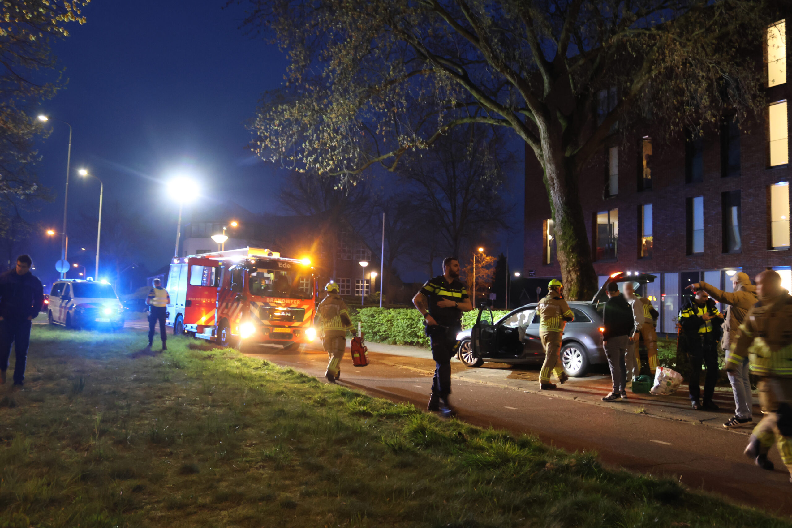 Hulpdiensten, waaronder de brandweer, kwamen ter plaatse omdat in eerste instantie werd gevreesd dat de bestuurder bekneld zat. Daar bleek uiteindelijk geen sprake van. Ook een ambulance kwam naar de locatie, maar de bestuurder raakte volgens een agent niet gewond. De auto reed in de richting van het centrum. Volgens een omstander heeft snelheid mogelijk een rol gespeeld.