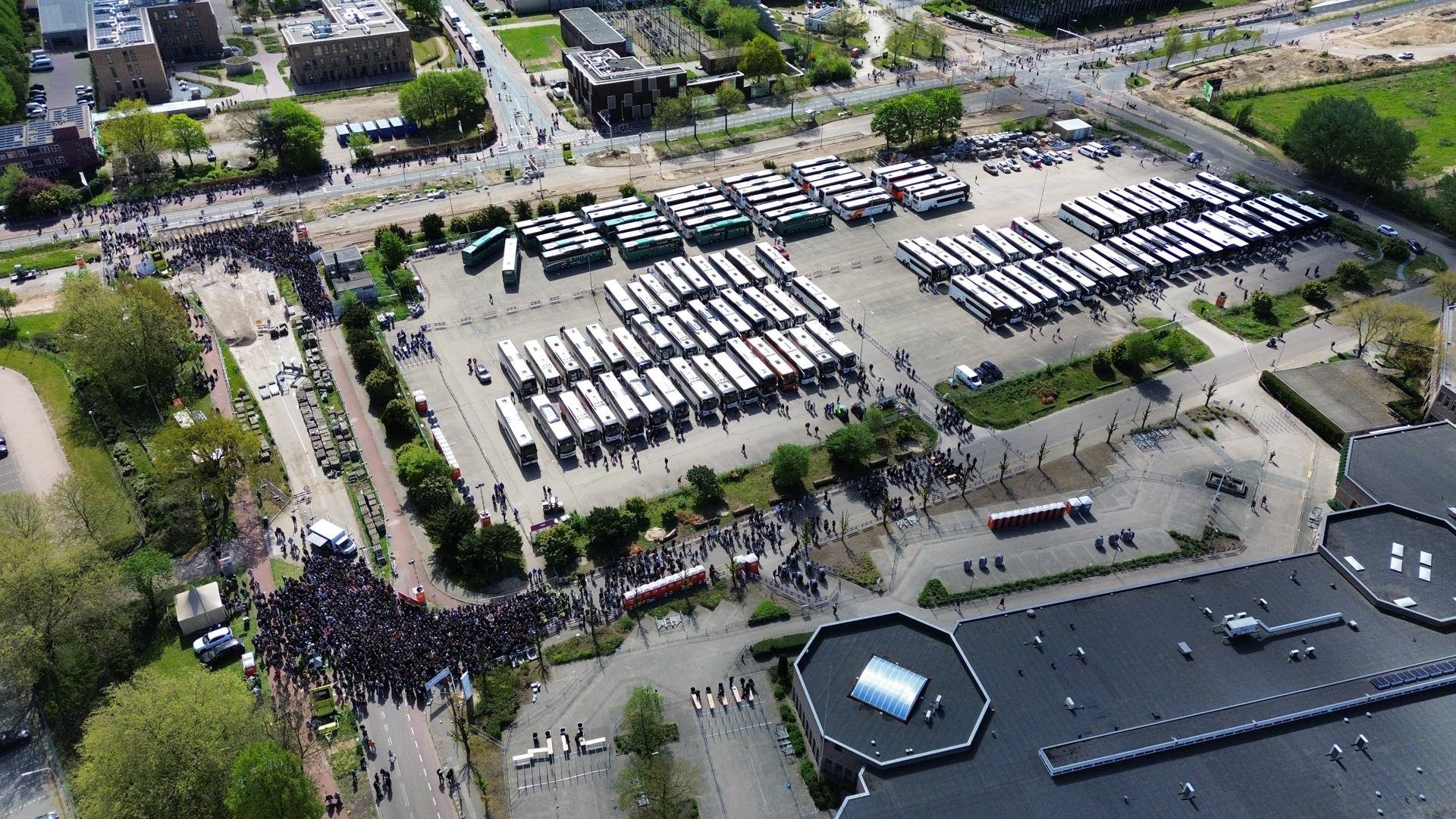 NIJMEGEN – Vanuit Nijmegen vertrekken 210 bussen met in totaal ongeveer 17.500 supporters van NEC naar De Kuip in Rotterdam voor de bekerfinale tegen AZ.