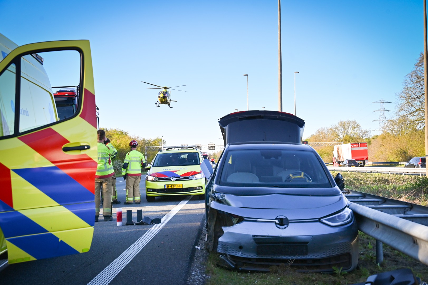Na het incident werden de hulpdiensten groots ingezet. De brandweer moest het slachtoffer uit de auto halen en ook een traumahelikopter landde op de snelweg om medische hulp te bieden. Het slachtoffer is met spoed overgebracht naar het ziekenhuis. De vrachtwagenchauffeur verleende direct eerste hulp en sloeg alarm.