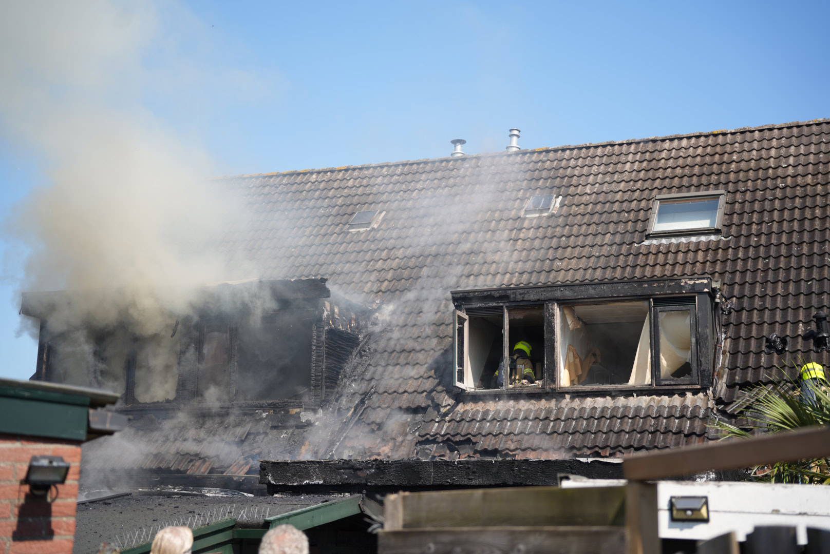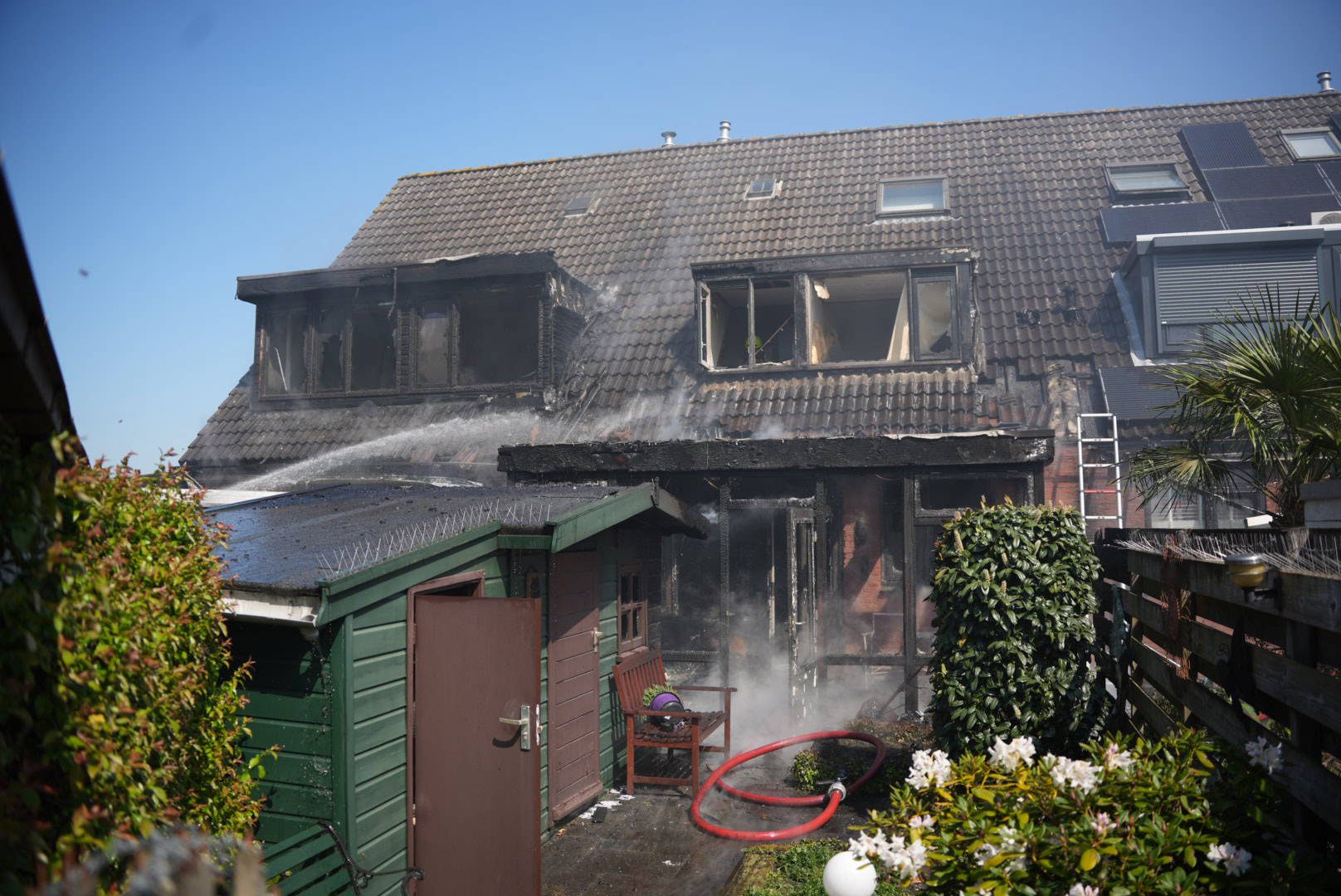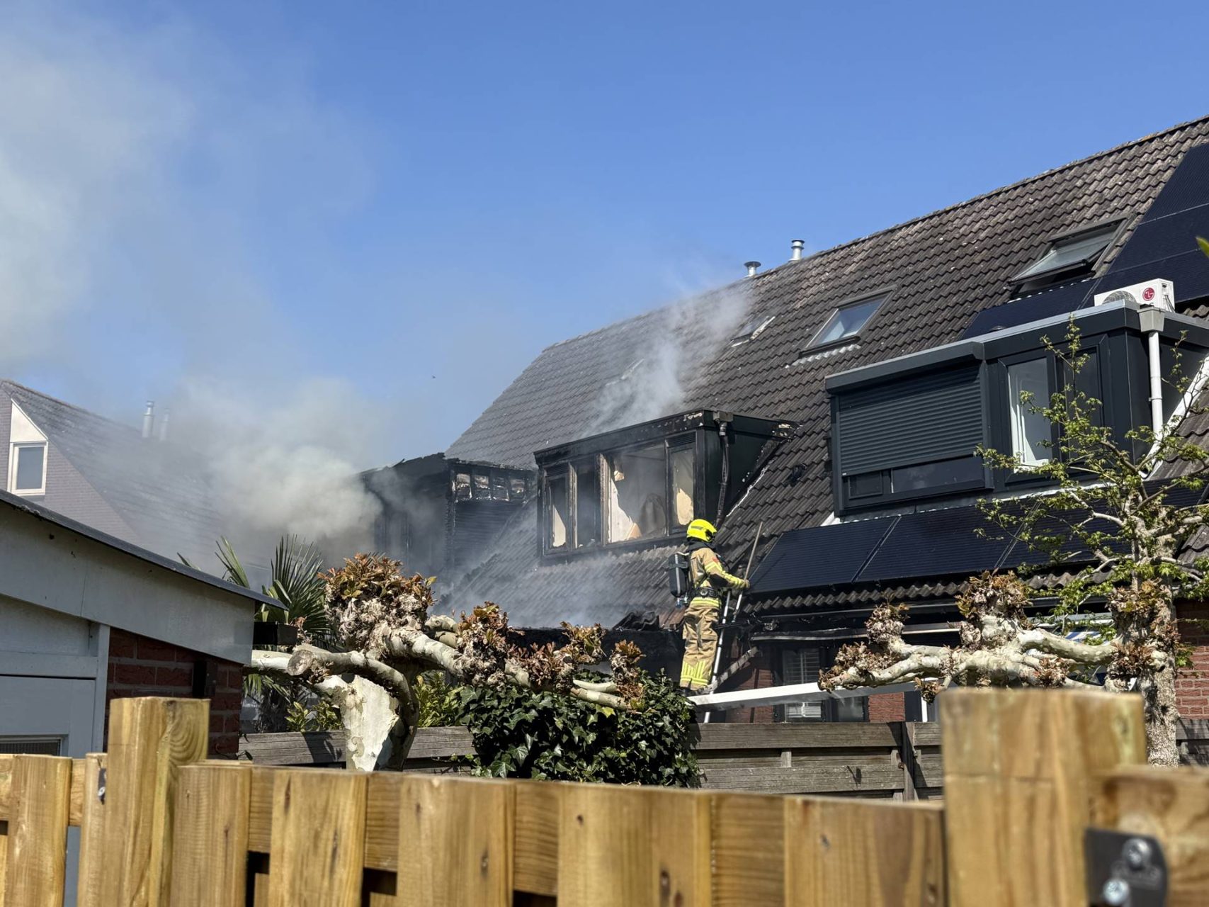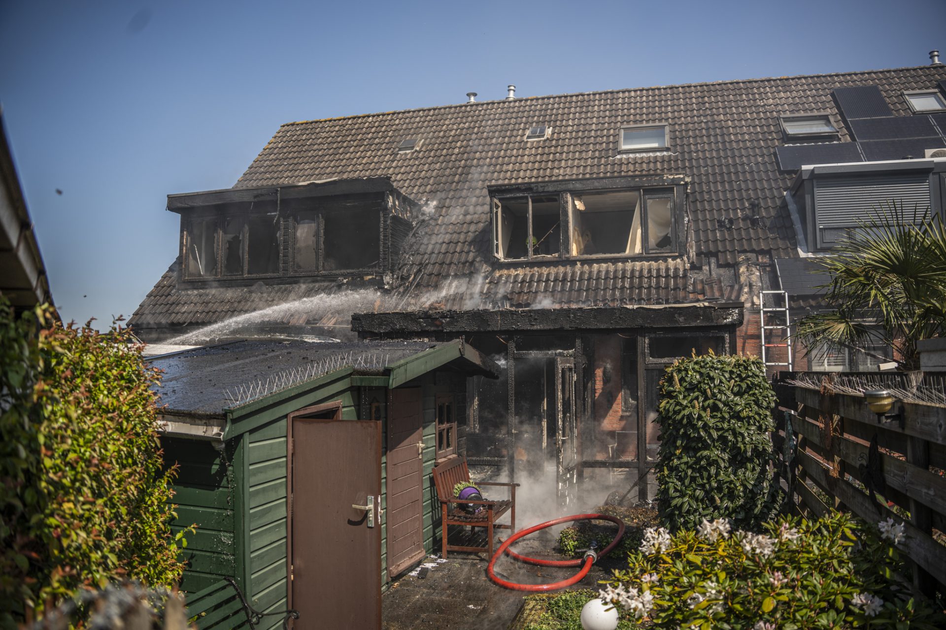 De vlammen sloegen vervolgens over naar de woning en ook naar een naastgelegen woning. Bij twee woningen stond de dakkapel in lichterlaaie en ontstond aanzienlijke schade. Bij een derde woning vatte onder meer een zonnescherm vlam.