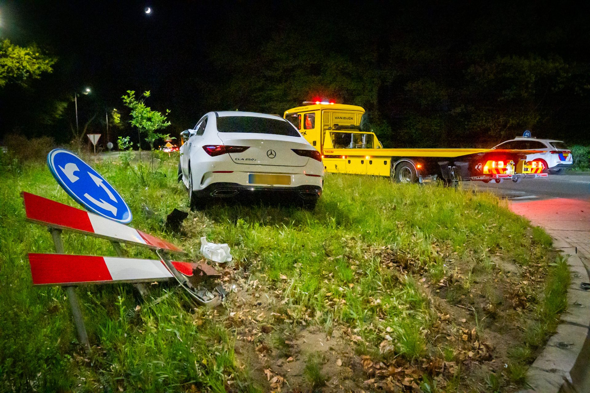 De voertuigen naderden de rotonde met te hoge snelheid en kwamen daar met elkaar in botsing. De witte Mercedes kwam op de rotonde tot stilstand nadat het voertuig tegen een verkeersbord was gereden. De zwarte Audi schoot over de rotonde heen, richtte flinke schade aan en kwam pas zo’n 100 meter verderop tot stilstand.