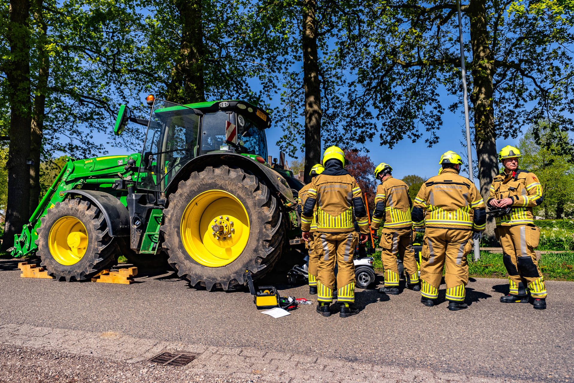 HERNEN – Donderdagmiddag rond 12:30 uur heeft zich een bijzondere aanrijding voorgedaan op de Dreef in Hernen, gemeente Wijchen. Een tractor stopte om ruimte te maken voor een passerende vrachtwagen. Een oudere man op een scootmobiel zag de tractor te laat en botste tegen het voertuig, waarbij de scootmobiel vast kwam te zitten tussen de tractor en de weg.