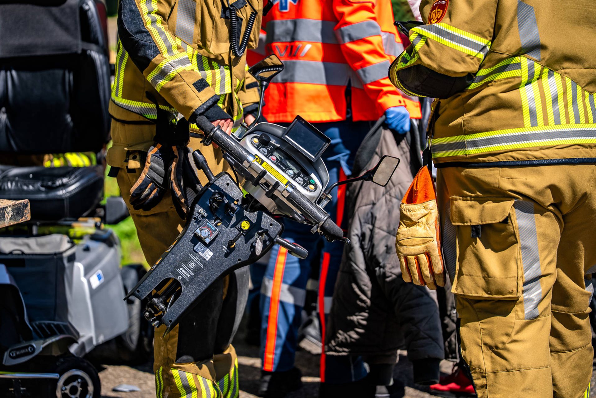 De brandweer uit Wijchen werd met spoed ter plaatse gestuurd, met een tankautospuit en een speciaal hulpverleningsvoertuig. Ook was er een ambulance aanwezig. De brandweer heeft snel gehandeld en de man, samen met zijn scootmobiel, losgemaakt. Met behulp van een hydraulische schaar werd het stuur van de scootmobiel losgeknipt, waardoor de man met hulp van het ambulancepersoneel op de brancard kon gaan liggen.