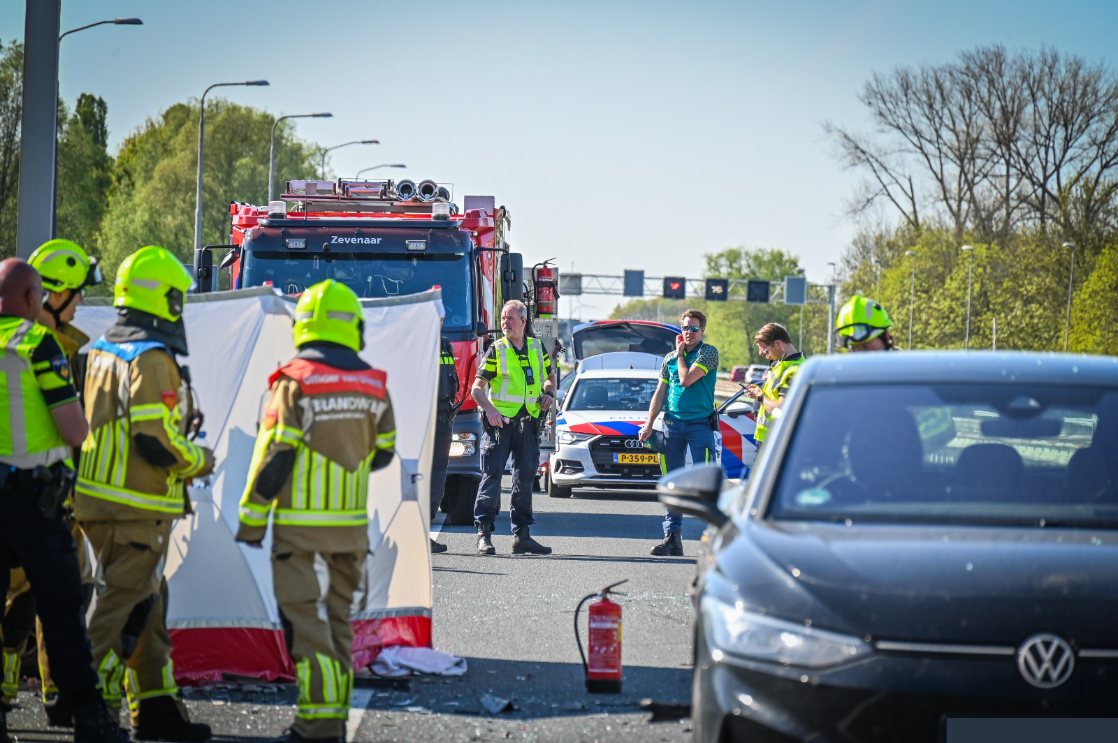 Kort na de melding rukten de hulpdiensten uit, waaronder meerdere ambulances, de brandweer en de politie. Ondanks de snelle hulpverlening bleek het slachtoffer ter plaatse te zijn overleden. De snelweg werd tijdelijk afgesloten voor onderzoek en om de omgeving veilig te stellen.