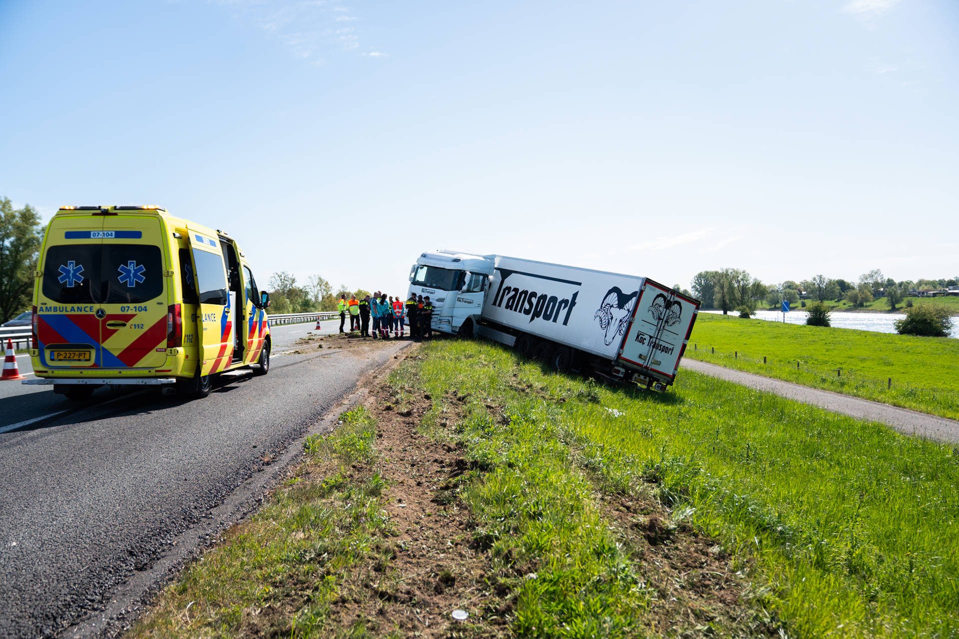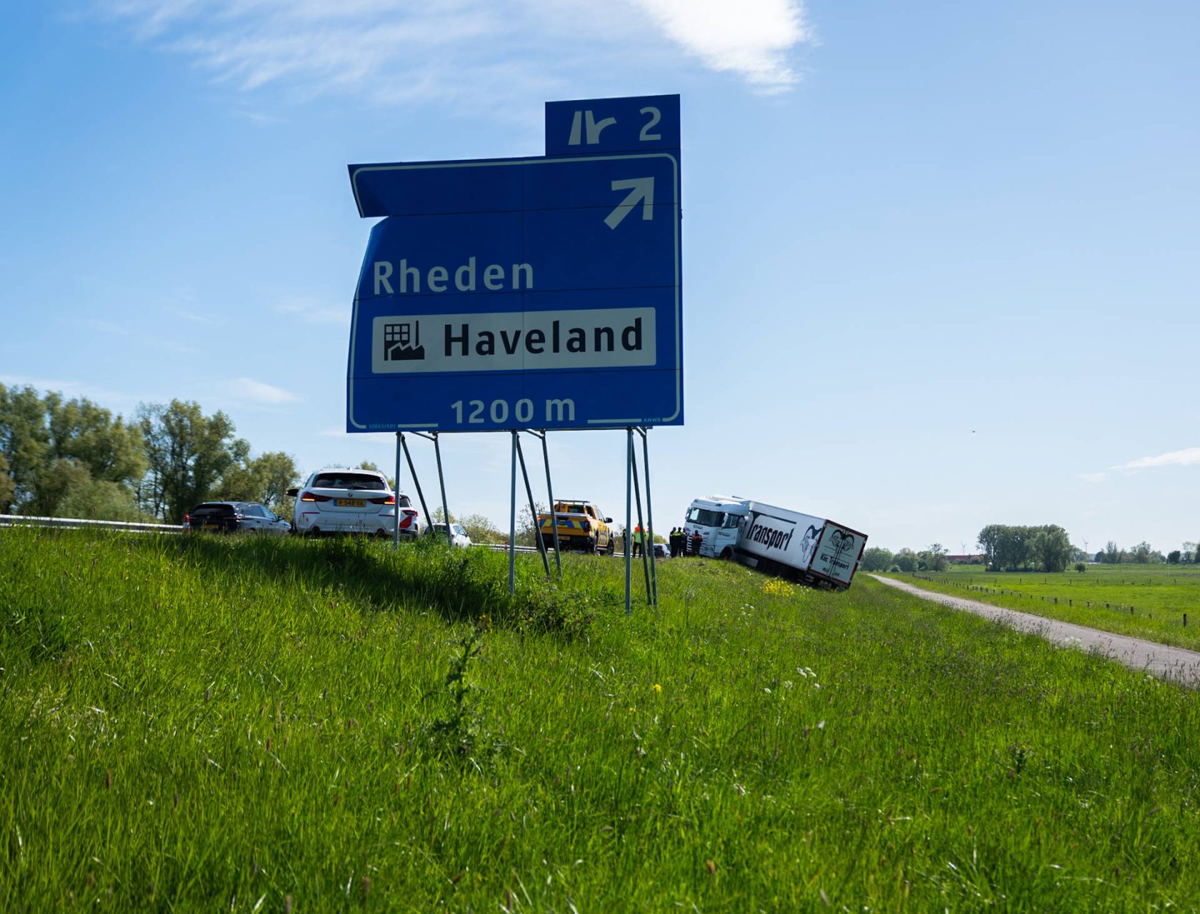 RHEDEN – Op de A348 bij Rheden heeft dinsdagochtend een vrachtwagen voor aanzienlijke verkeershinder gezorgd nadat het voertuig in de berm terechtkwam en deels schaarde.