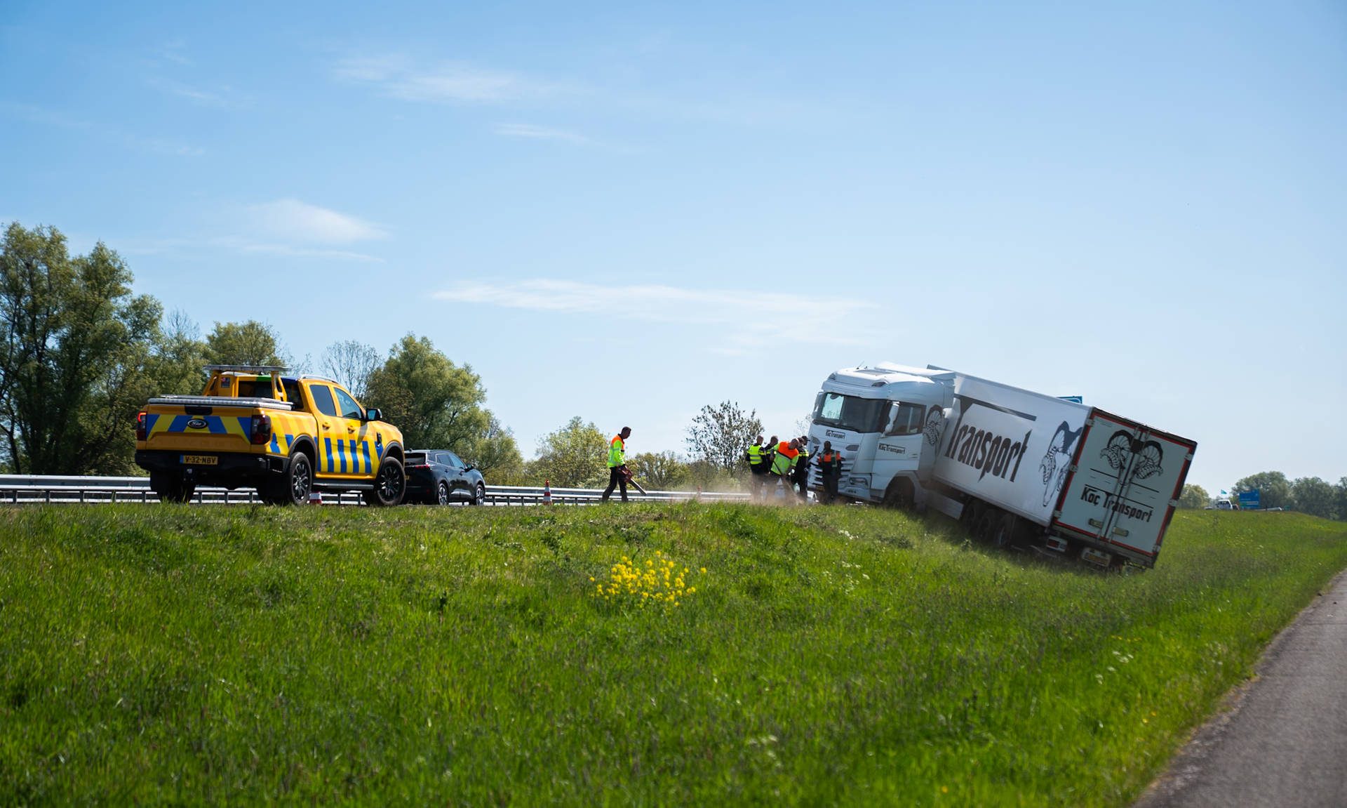 De hulpdiensten werden rond 10:30 uur gealarmeerd voor een ongeval. Bij aankomst van de hulpdiensten bleek dat de vrachtwagen in de berm stond en scheef was komen te staan. Hoe het voertuig precies van de weg is geraakt, is nog niet bekend en wordt onderzocht.