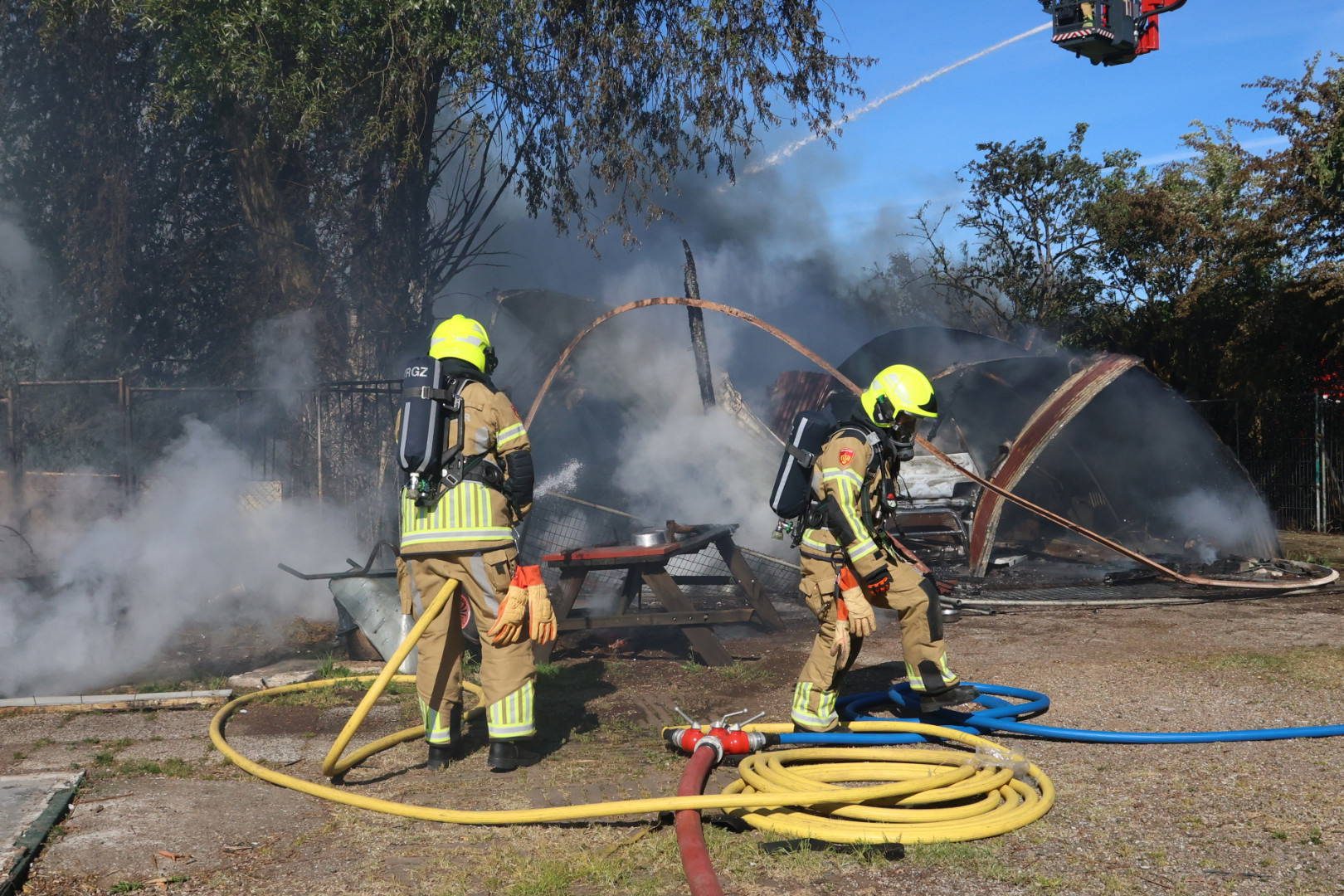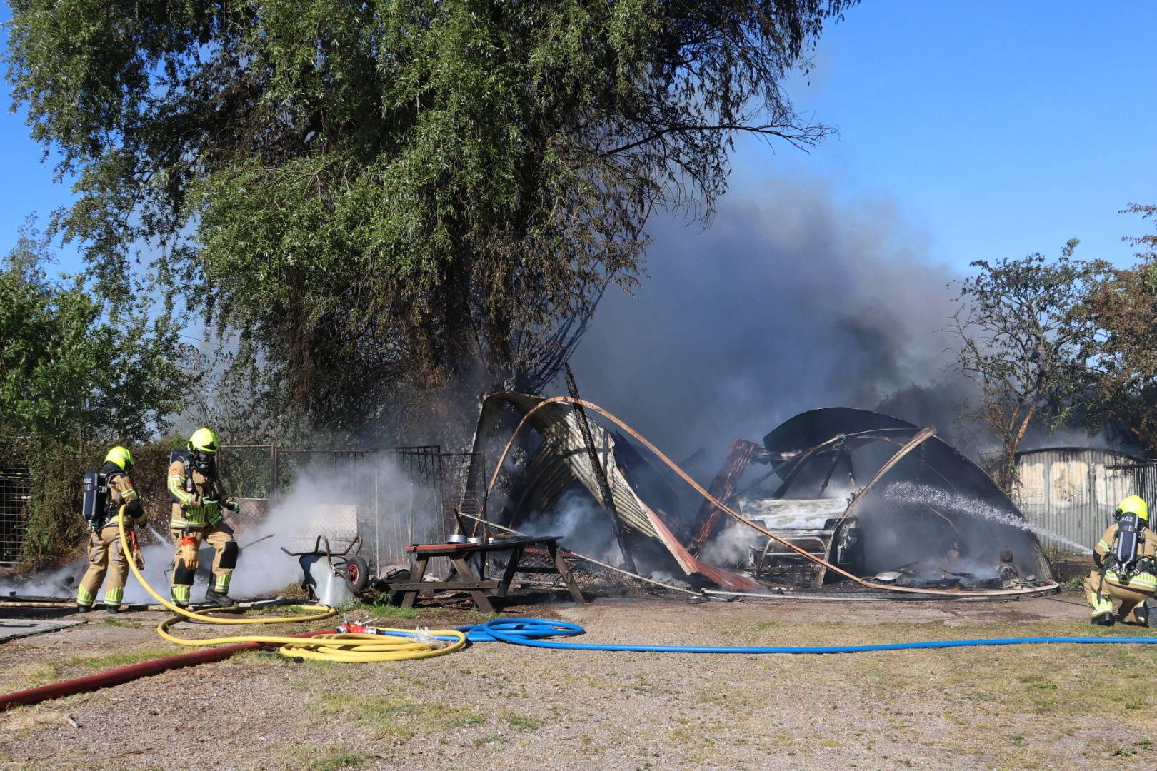 De politie zette de omgeving af. Op het terrein liepen meerdere honden rond; zij zijn door agenten in veiligheid gebracht. Over de oorzaak van de brand is nog niets bekend.