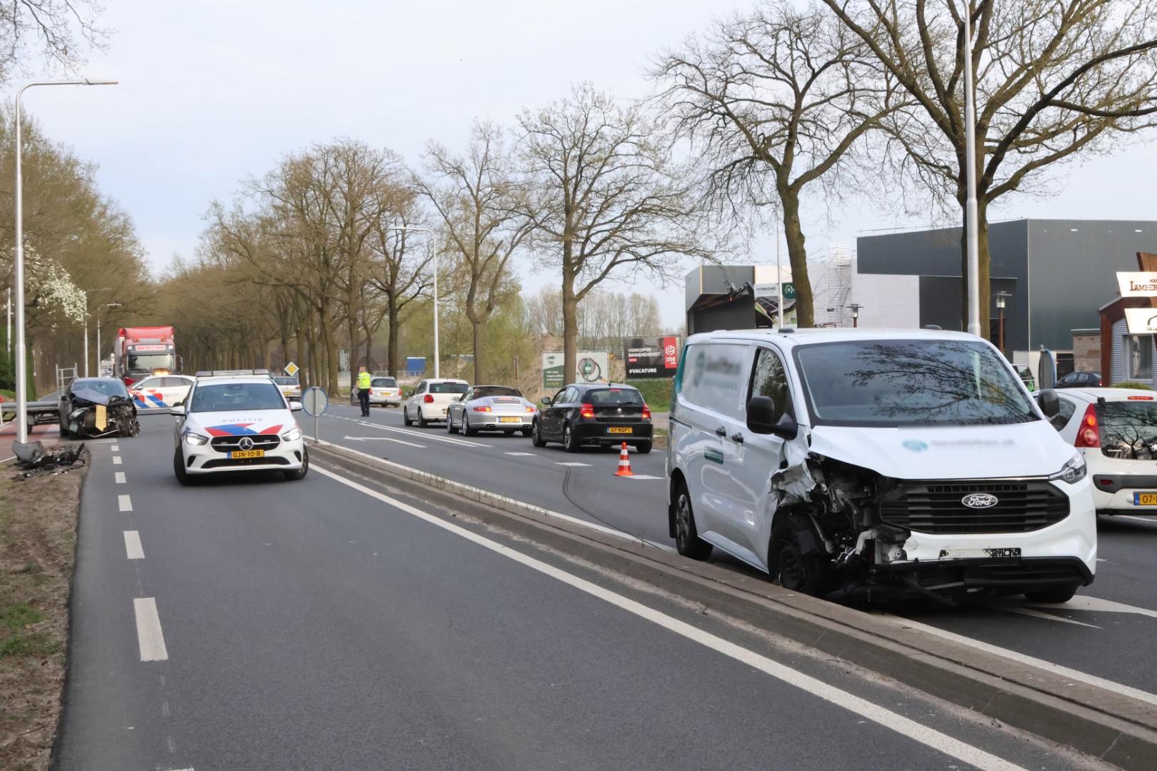 EDERVEEN – Op de N224 Rijksweg in Ederveen heeft donderdagmiddag een ongeval plaatsgevonden. Rond 17:30 uur werden de hulpdiensten opgeroepen. Een auto met aanhanger is in botsing gekomen met een bestelbus op de kruising met de Meikade. Beide voertuigen raakten flink beschadigd en kunnen niet meer verder rijden.
