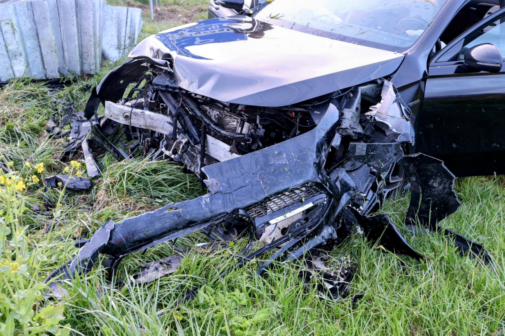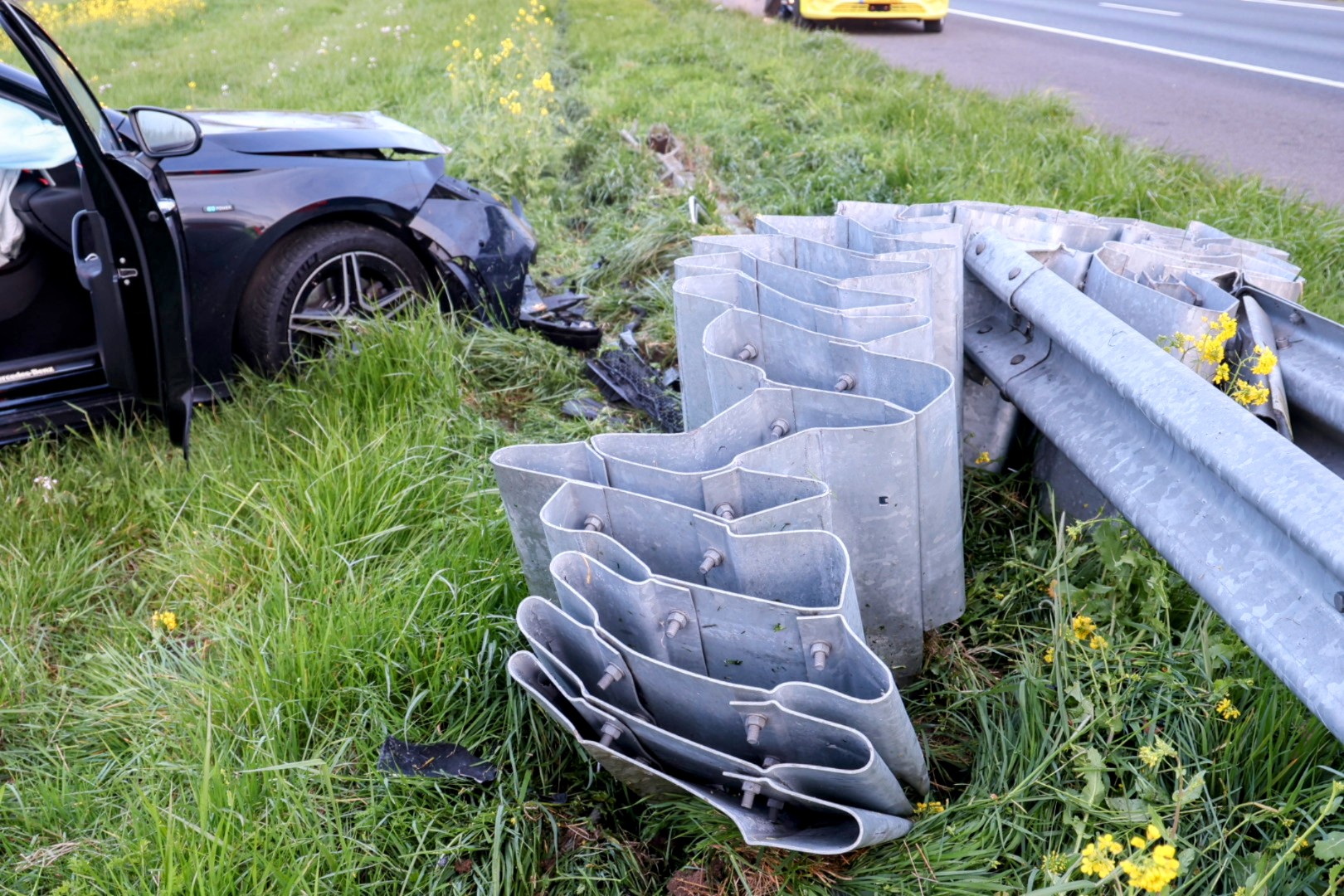 Een personenauto botste daar tegen een rimpelbuisobstakelbeveiliger, ook wel RIMOB genoemd. Door de klap raakte de auto total loss. Een koplamp kwam tientallen meters verderop in de berm terecht.