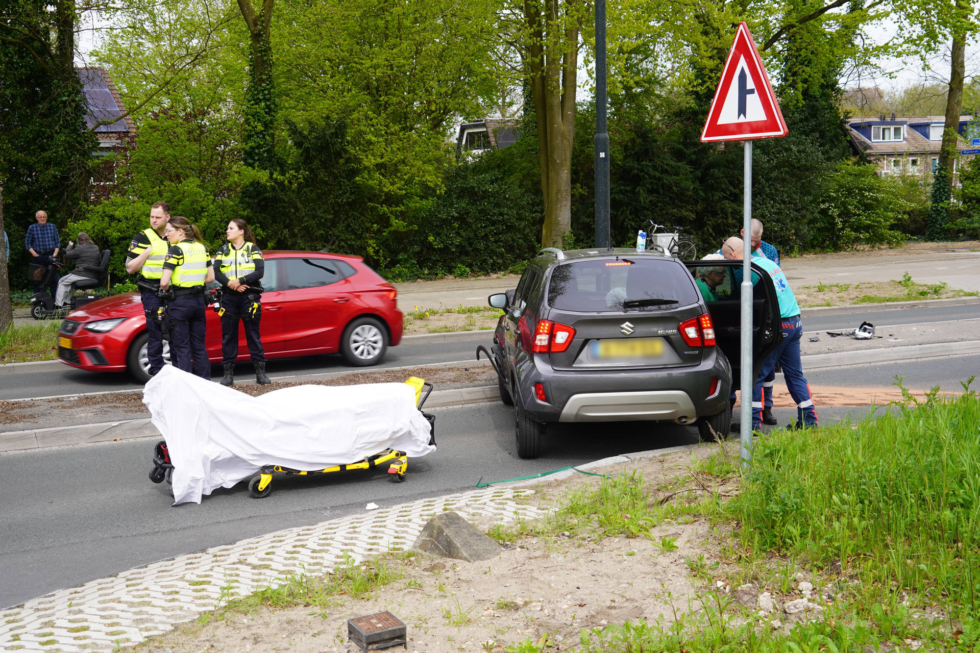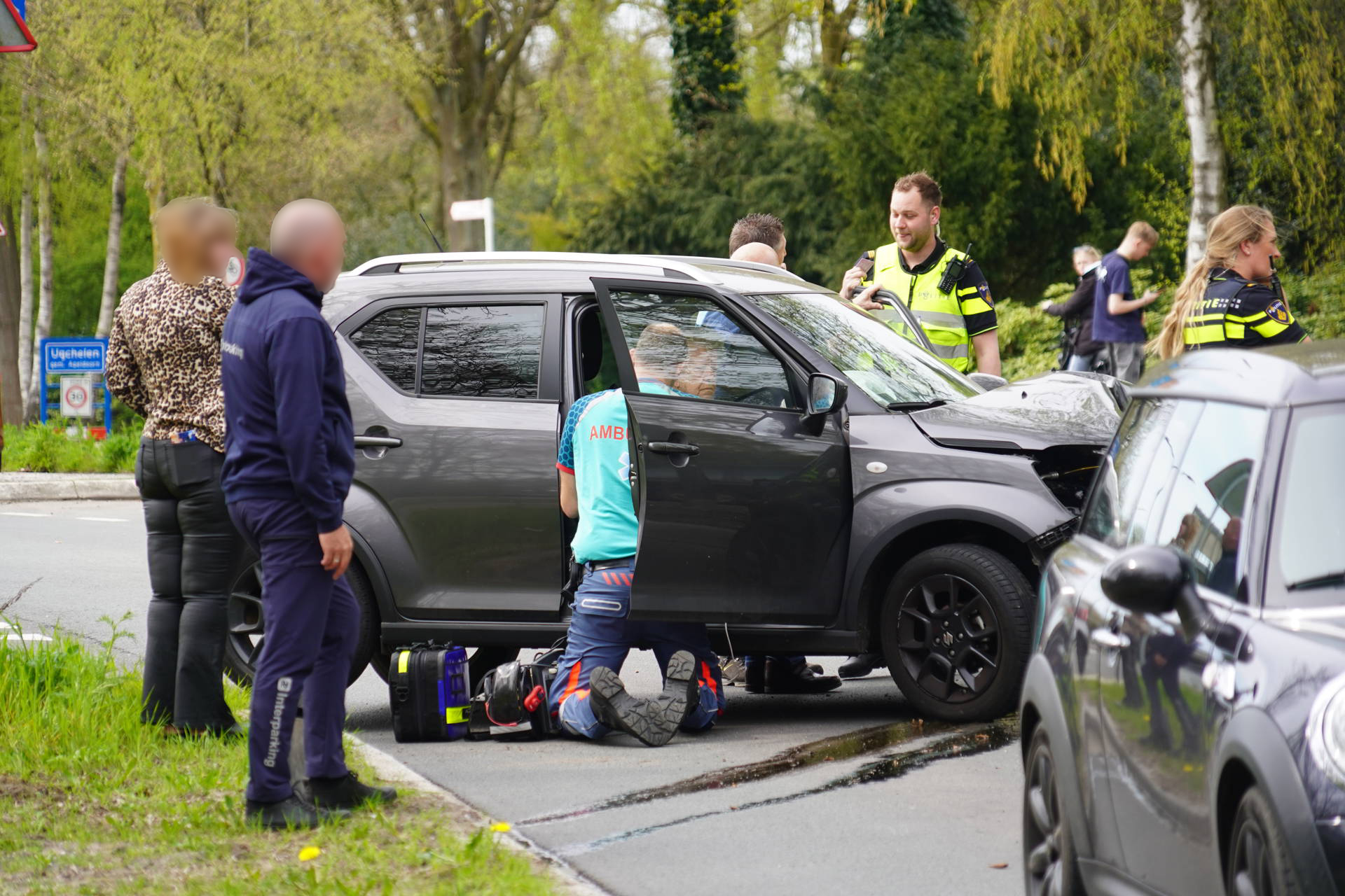 De auto reed vanuit een parkeerplaats de weg op en botste in een bocht tegen een paal. In het voertuig zaten twee oudere inzittenden. Zij zijn ter plaatse nagekeken door ambulancepersoneel. Eén vrouw is daarna per ambulance overgebracht naar het ziekenhuis voor verdere controle.