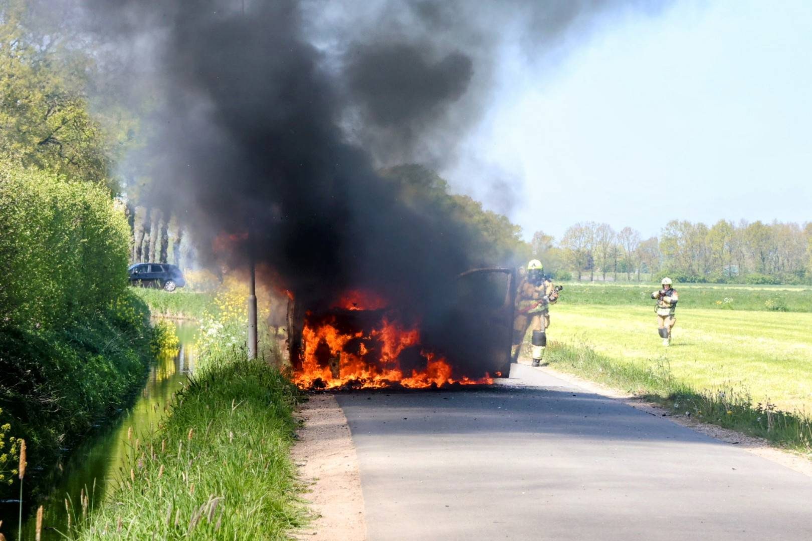 Bij aankomst van de brandweer stond er een bedrijfsbus in lichterlaaie. De brandweer heeft direct een extra waterwagen laten oproepen uit Ochten. Met redgereedschap is de achterklep losgemaakt en werd er ook schuim ingezet, vanwege lekkende brandstof. De eigenaar vertelde dat hij afgelopen donderdag de auto uit de garage had opgehaald na groot onderhoud van een maand.