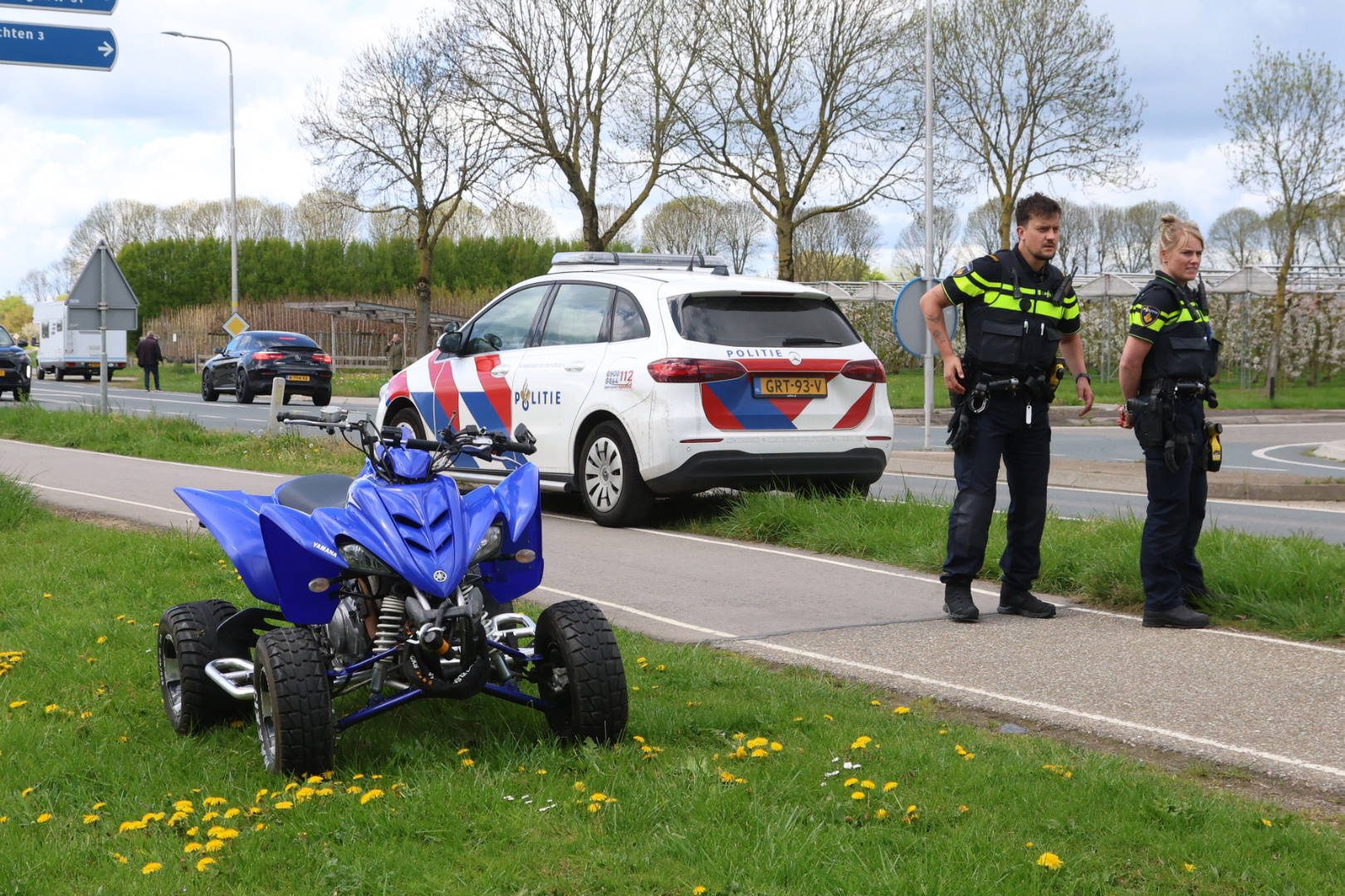 De bestuurder van de quad botste achterop de auto en raakte daarbij gewond. Het slachtoffer is voor behandeling overgebracht naar het ziekenhuis.