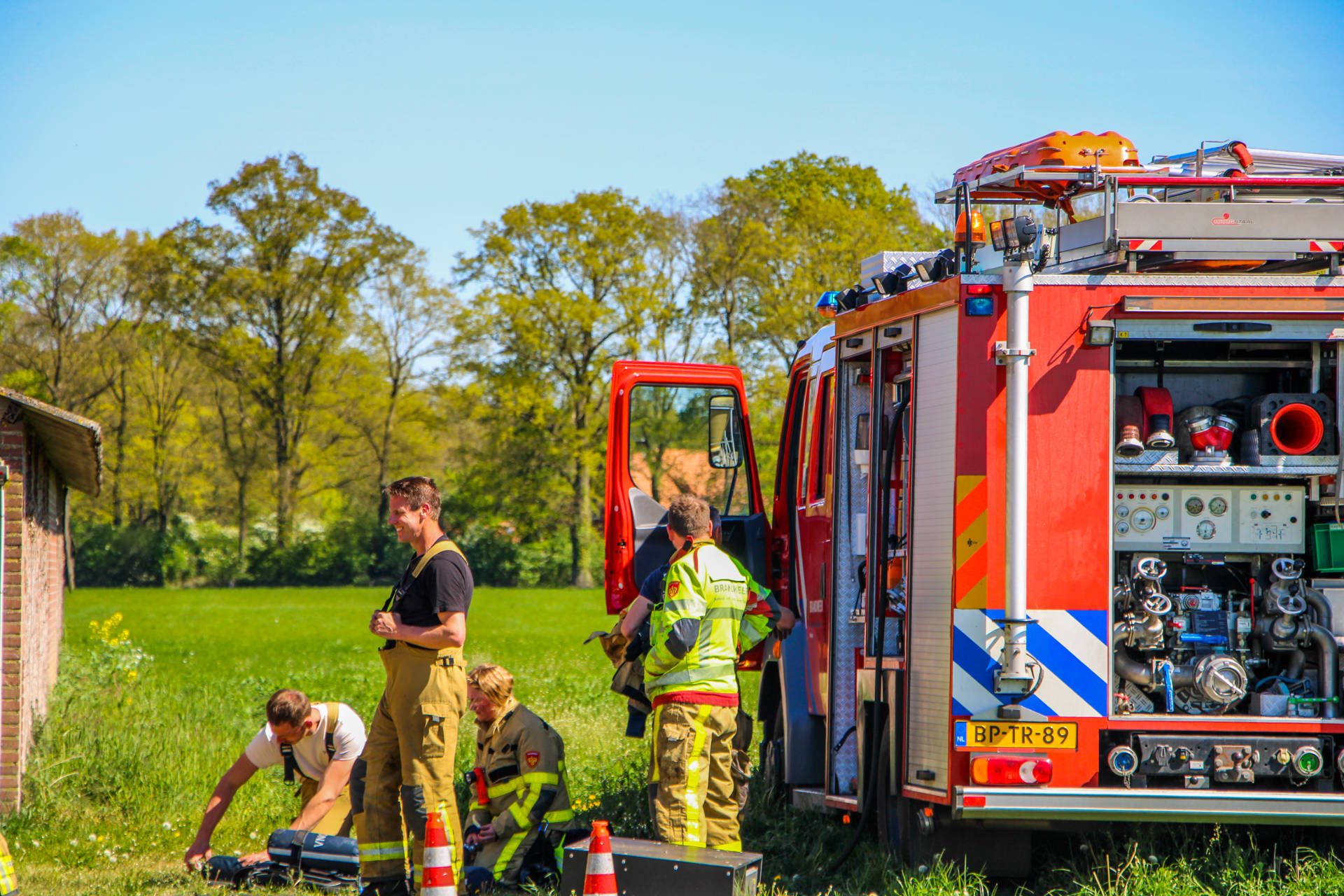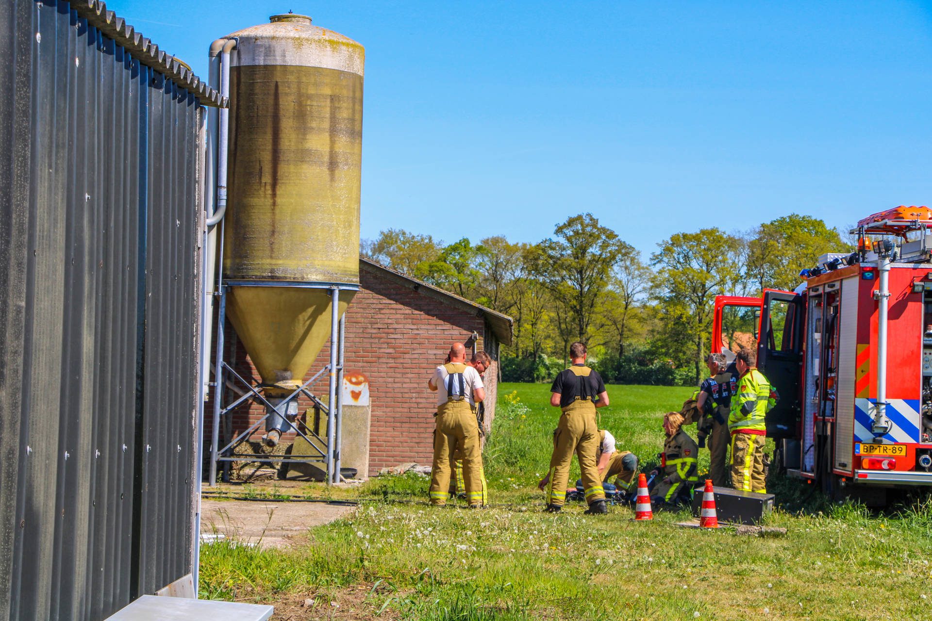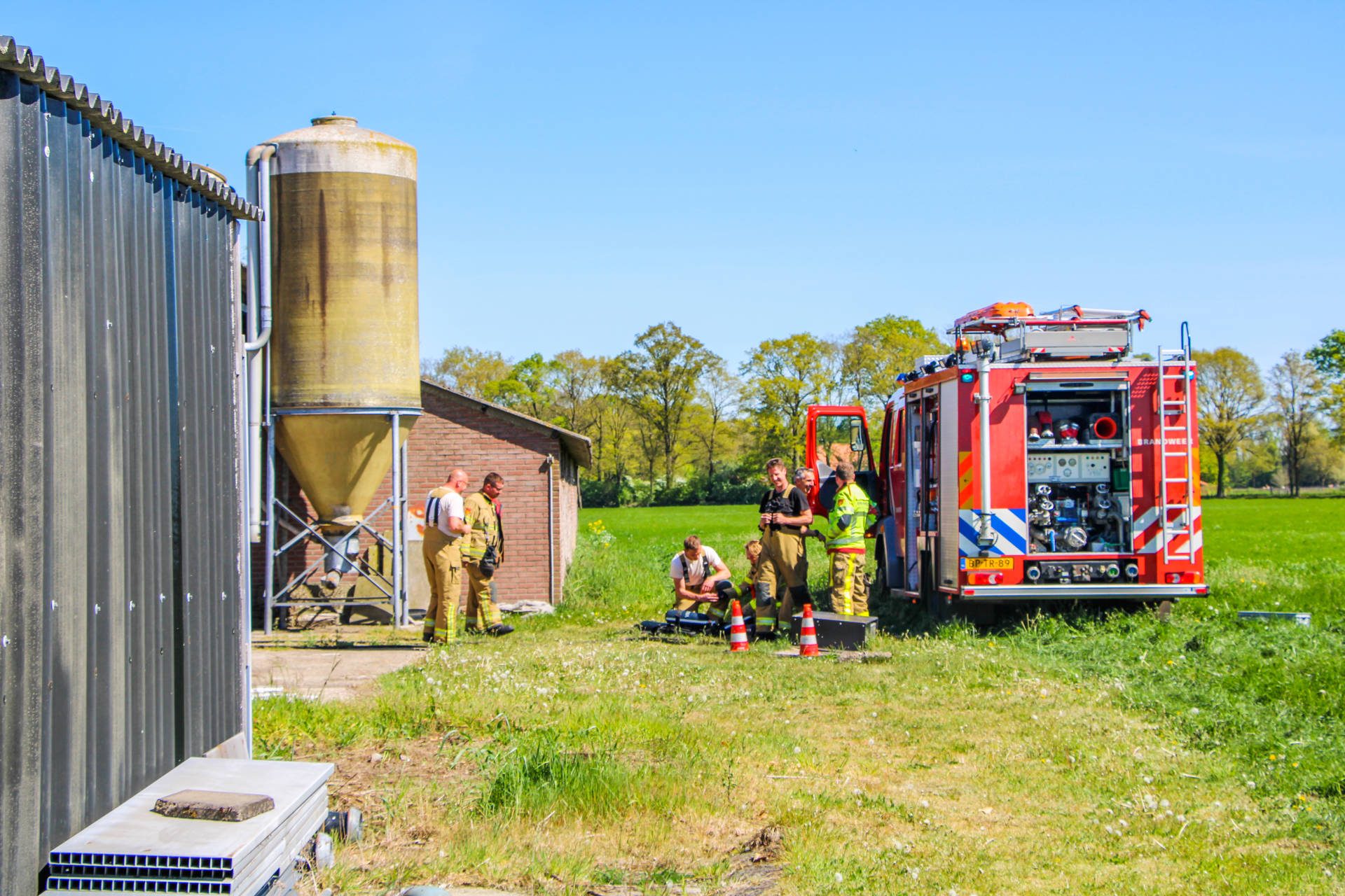 De melding werd woensdag 29 april rond 11.29 uur gedaan. De brand bevond zich op korte afstand van een naastgelegen stal met varkens. De brandweer kwam met meerdere blusvoertuigen, een waterwagen en een redvoertuig ter plaatse om het vuur te bestrijden en uitbreiding te voorkomen.