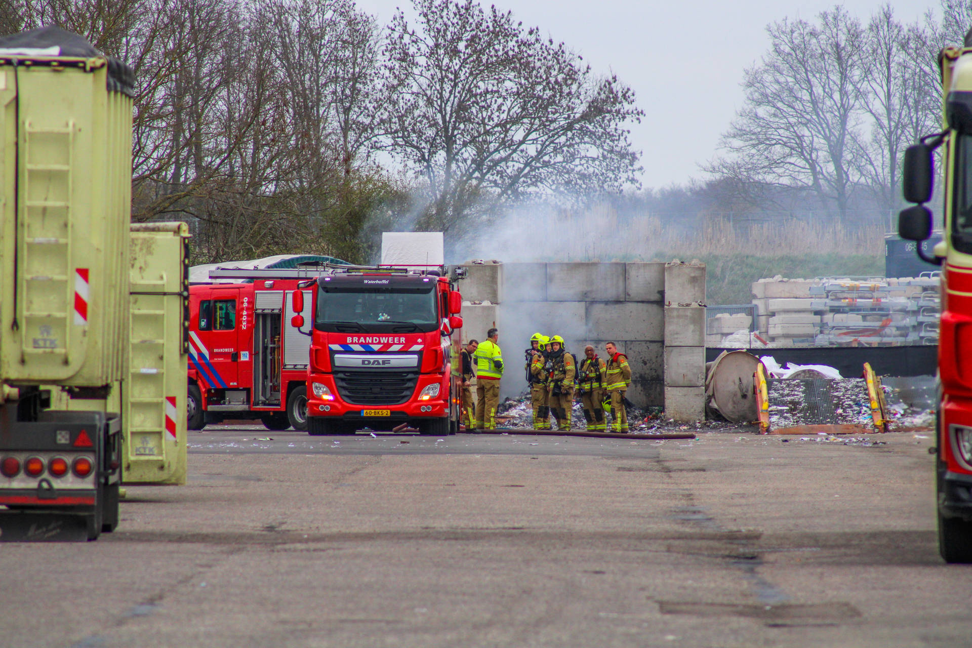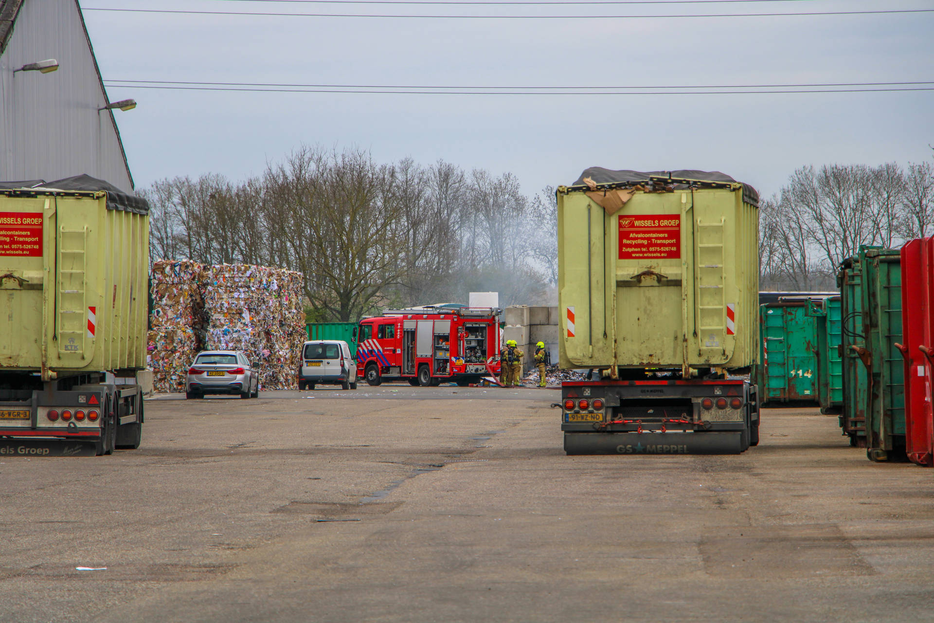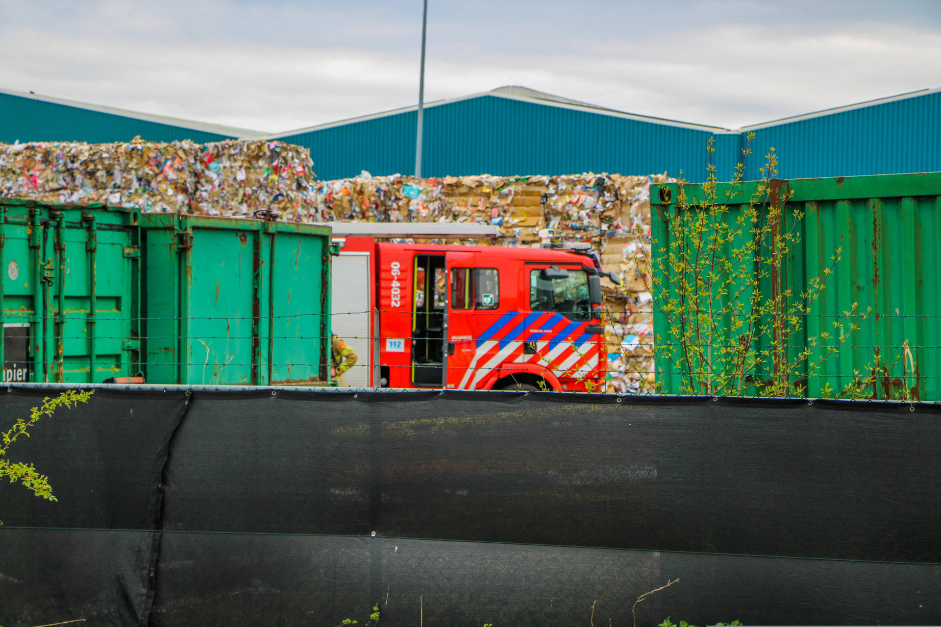 Brand in opslag met papierbalen bij papierbedrijf