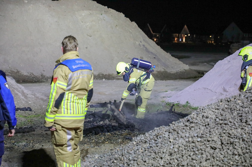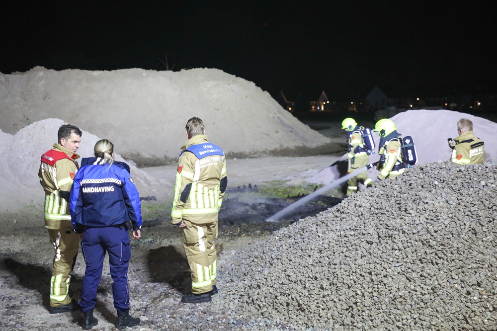 Brandweer blust kampvuur op bouwplaats