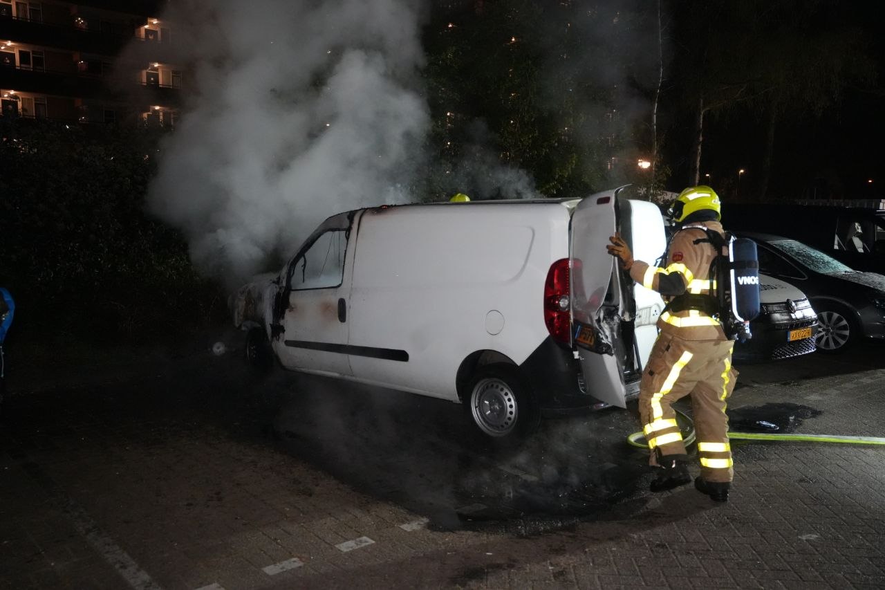 Op een parkeerplaats bleek het voertuig al in brand te staan. De brandweer had het vuur snel onder controle, maar kon niet voorkomen dat het busje volledig verloren ging. Om de brand goed te kunnen blussen, moest de achterkant van het voertuig worden opengebroken.