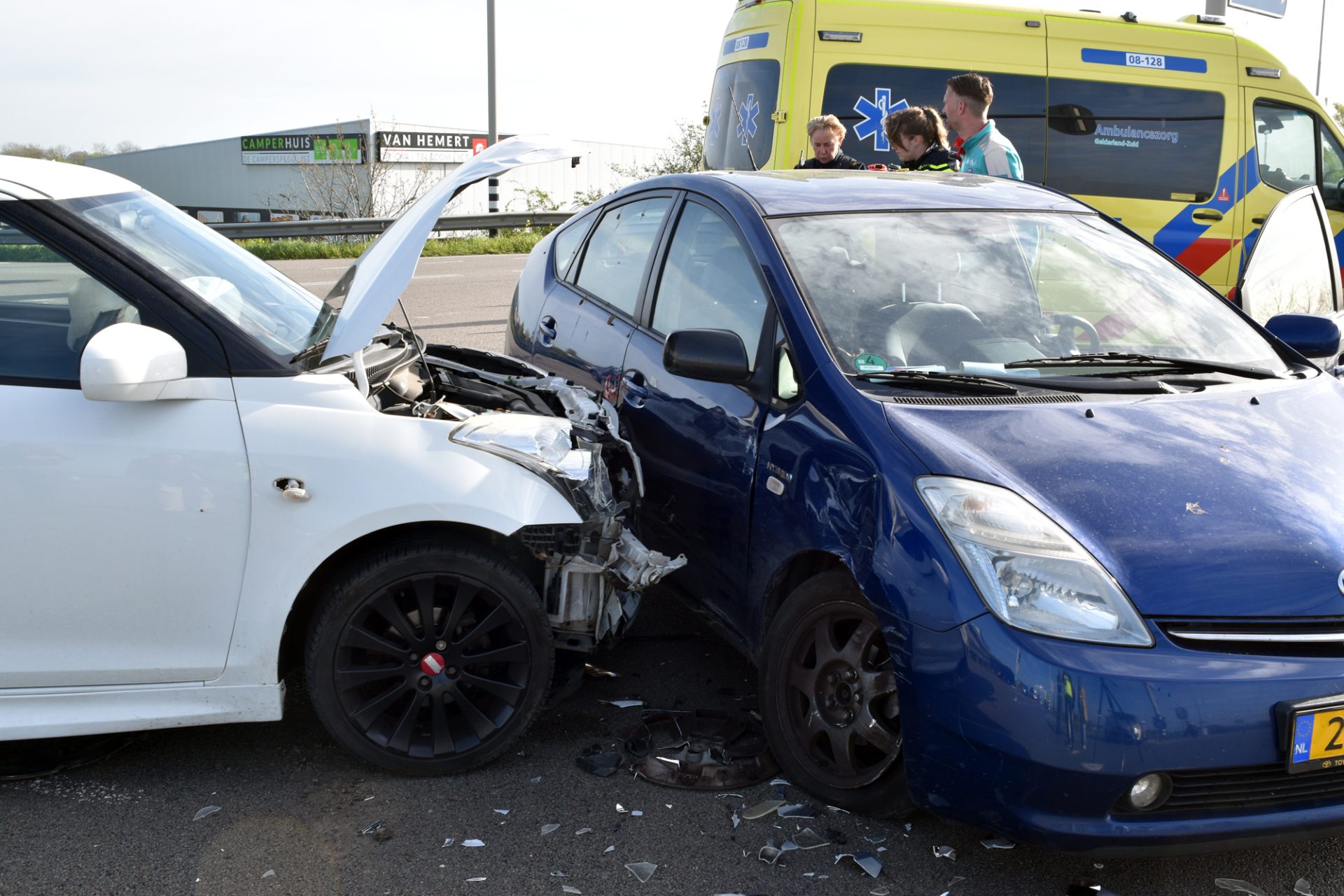 ZALTBOMMEL – Op de Van Heemstraweg (N322), ter hoogte van de verkeerslichten bij de op- en afrit van de A2, zijn donderdagmorgen drie personenauto’s op elkaar gebotst. Een bestuurster raakte daarbij gewond en is per ambulance naar het ziekenhuis vervoerd.