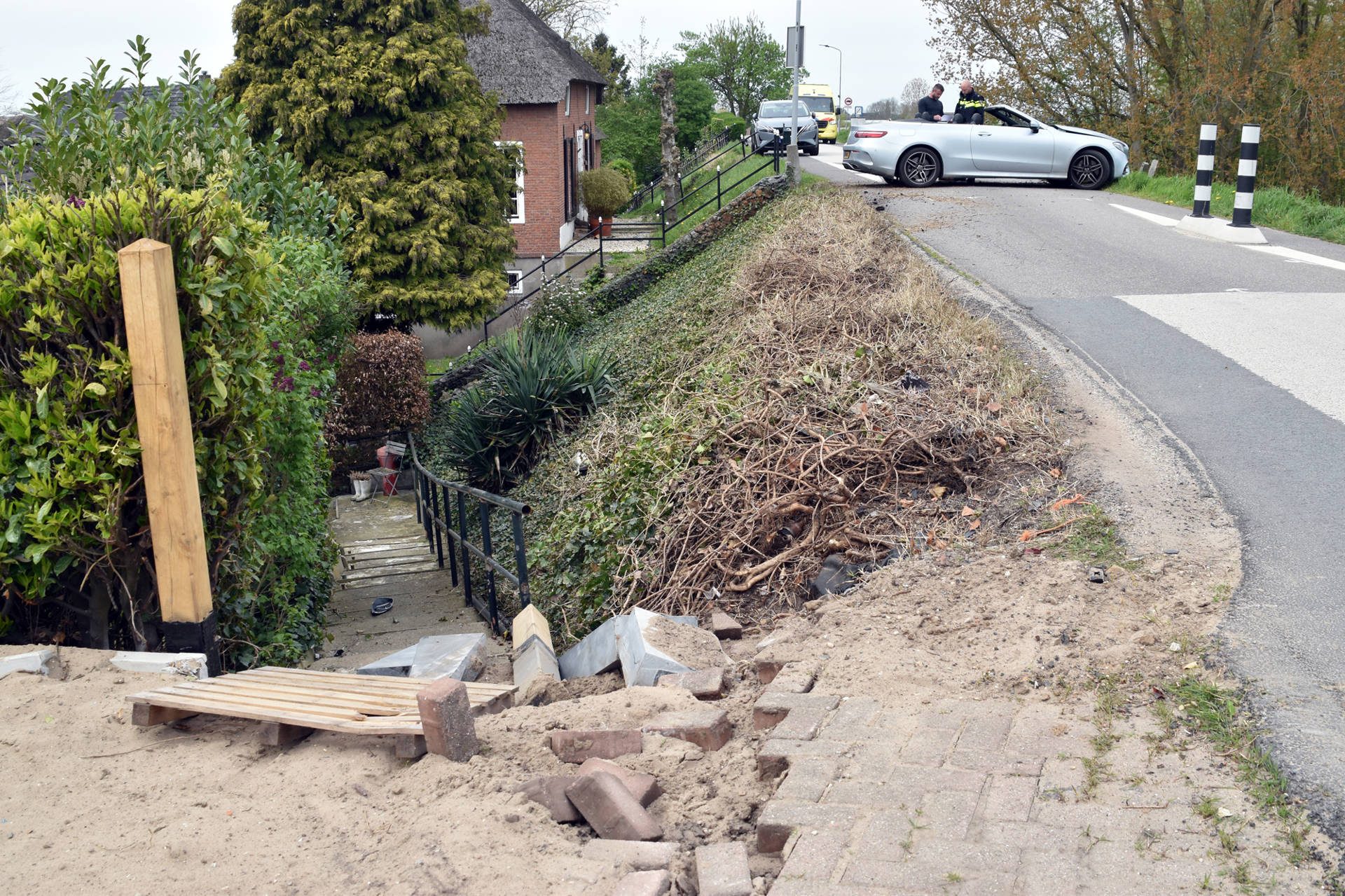 De bestuurder vloog uit de bocht, raakte een paal en kwam dwars op de weg tot stilstand. Vermoedelijk speelde een te hoge snelheid een rol bij het ongeval. Het voertuig raakte zwaar beschadigd en ook een betonnen trap bij een nabijgelegen woning werd opnieuw vernield.
