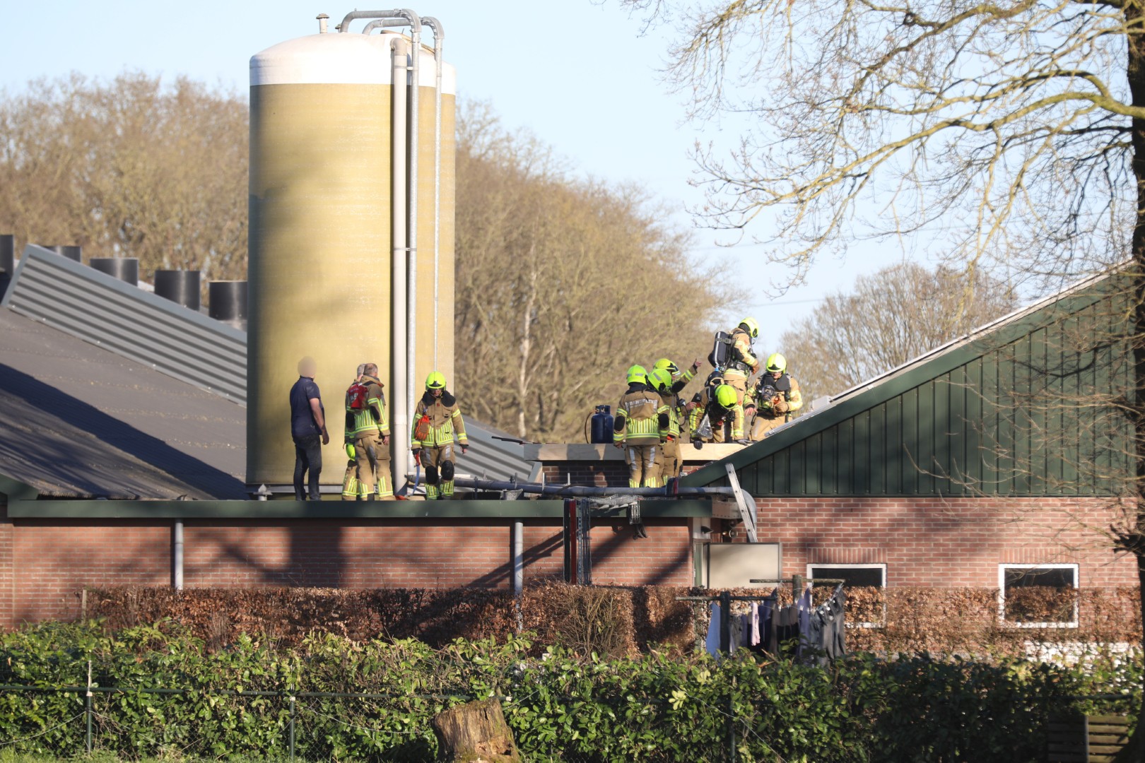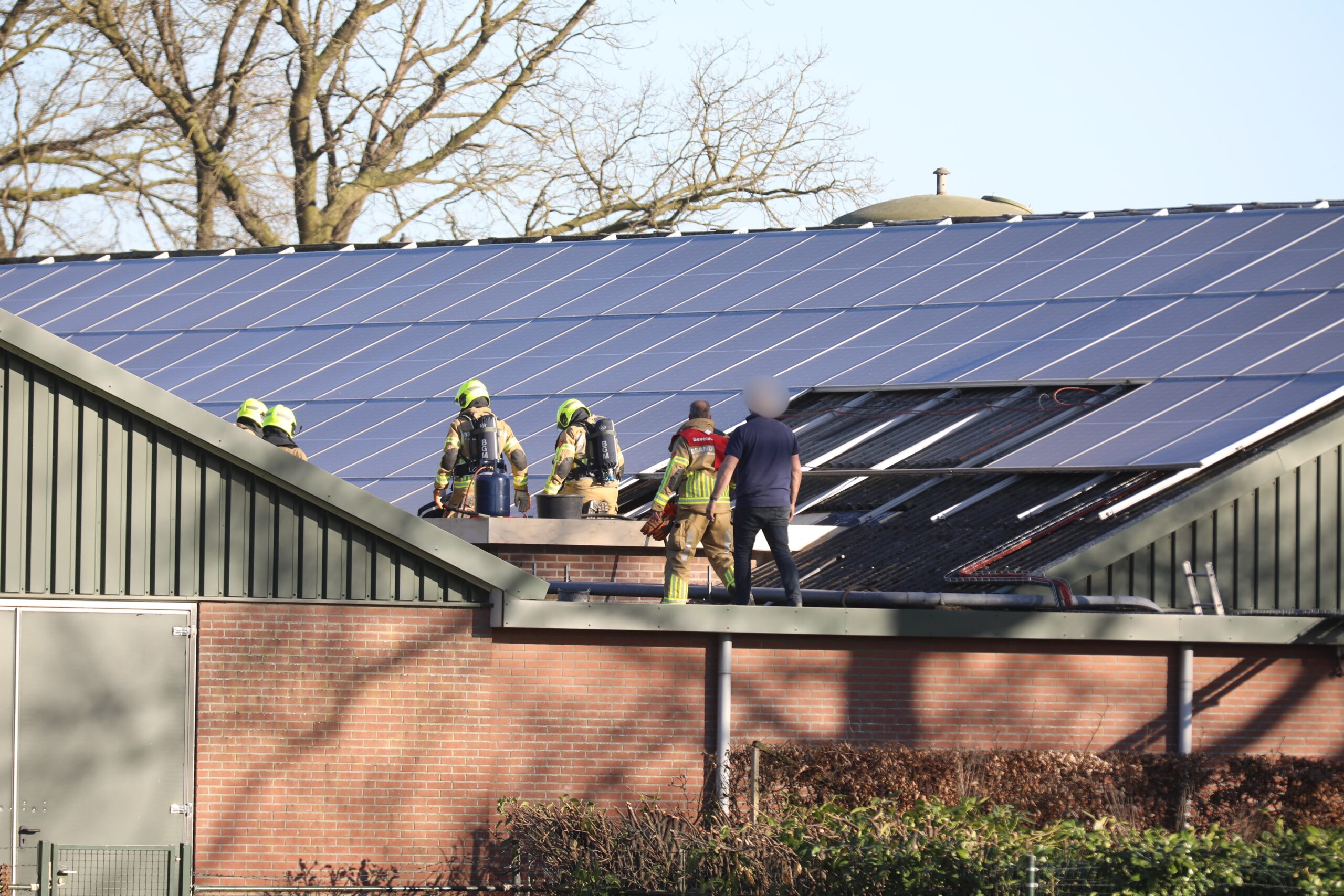 De eigenaar van een boerderij was op het dak van een grote kippenschuur bezig met werkzaamheden toen het dakleer plotseling vlam vatte. Terwijl de brandweer werd gealarmeerd, wist de man het vuur zelf te blussen met een brandblusser. De toegesnelde brandweer heeft vervolgens gecontroleerd of de brand volledig onder controle was.