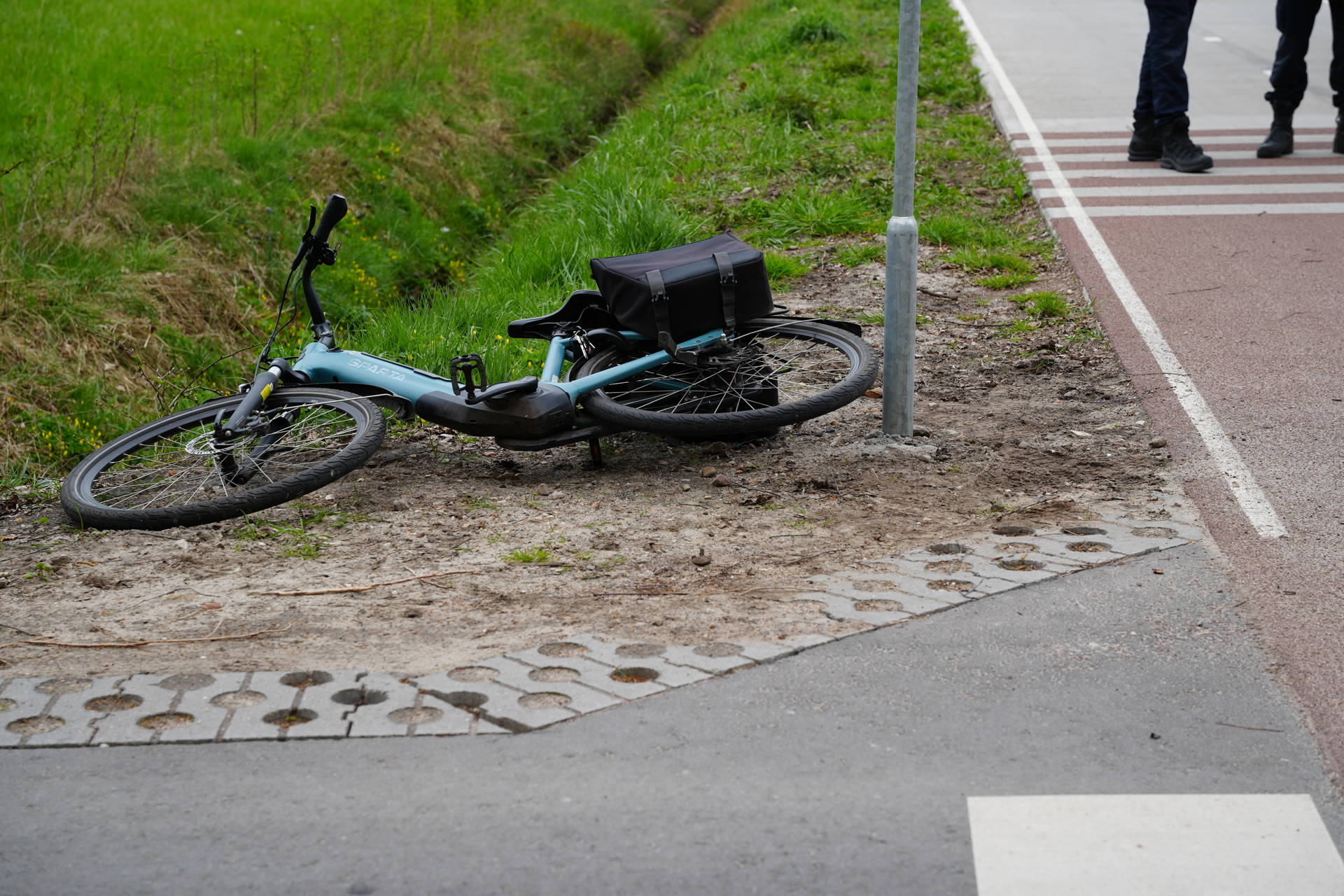 Een omstander ving de fietser op in afwachting van de ambulance. Ambulancepersoneel heeft het slachtoffer vervolgens in de ambulance gecontroleerd op eventuele verwondingen.