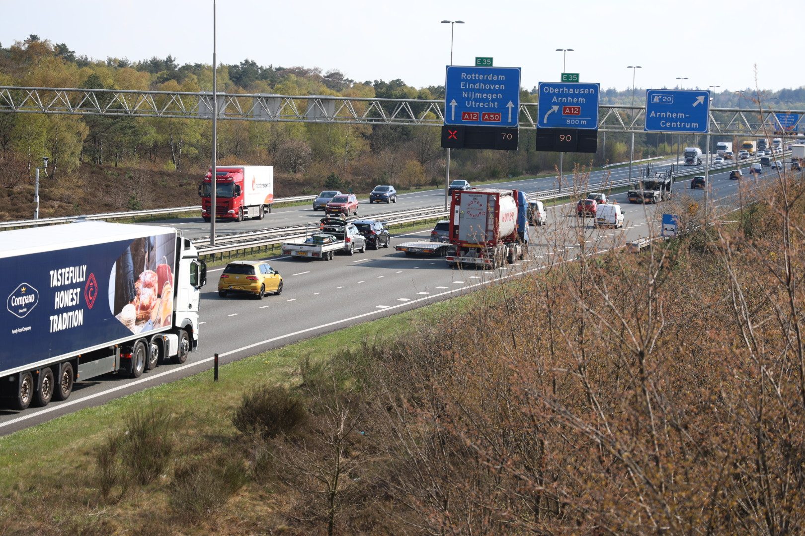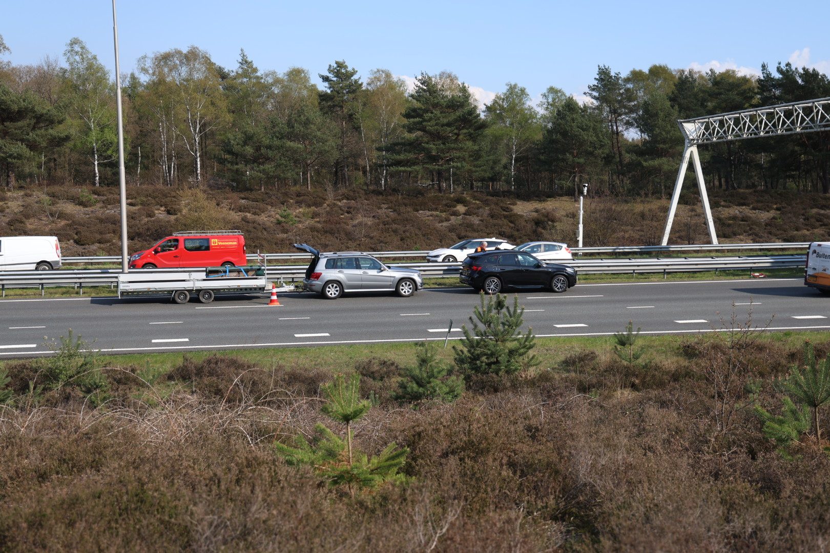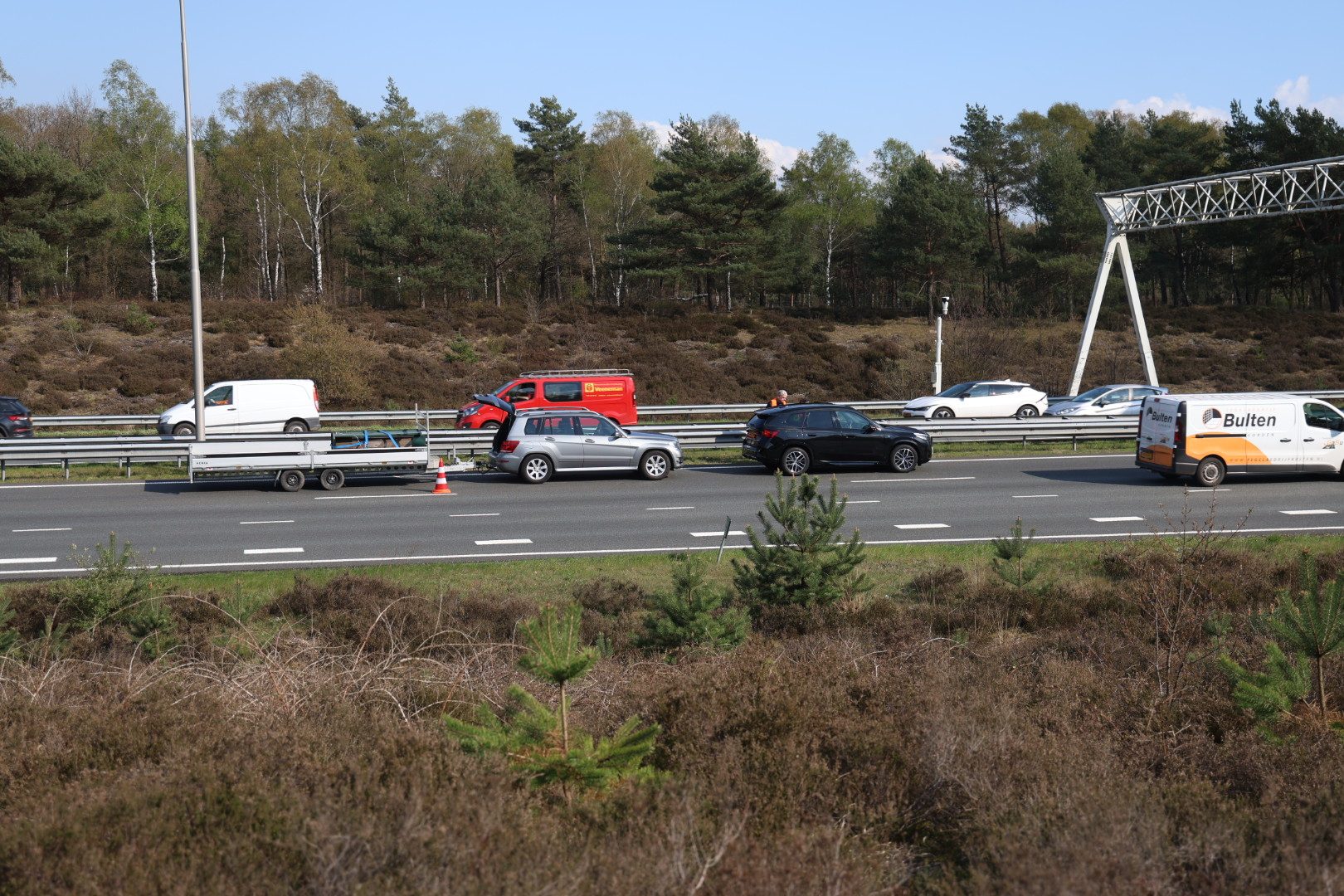 File op A50 na kop-staartbotsing met auto en aanhanger