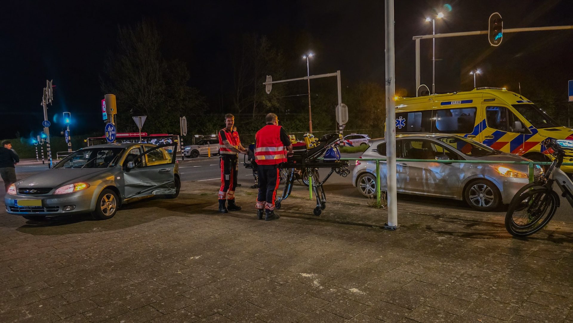 Het ongeval gebeurde rond 21.30 uur, kort voor het einde van de wedstrijd van Vitesse. Volgens de politie reed een van de betrokken voertuigen door rood, waarna de aanrijding ontstond. Vooral één auto raakte flink beschadigd.