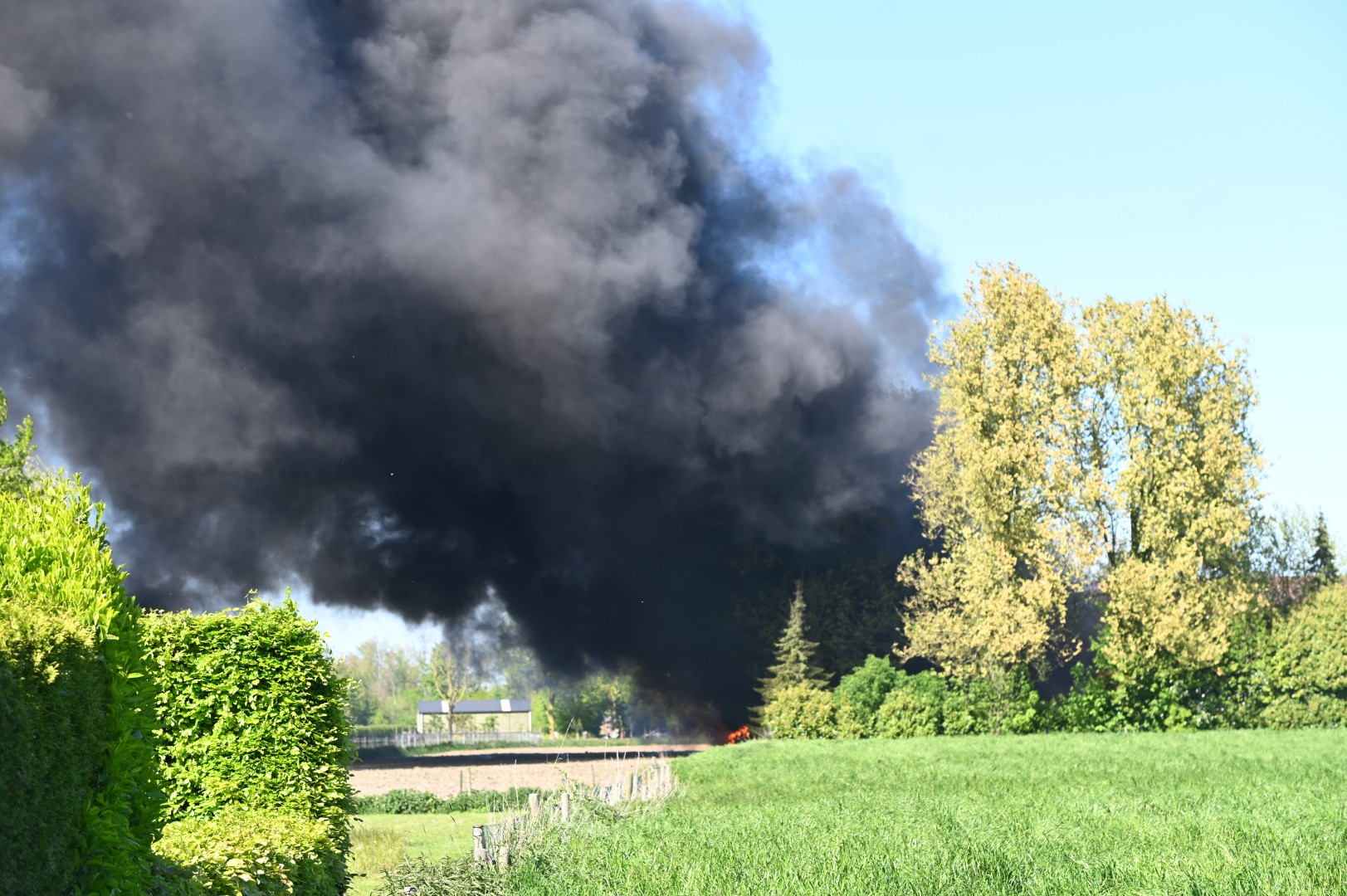 Vanwege de hevige rookontwikkeling werd een naastgelegen tuincentrum uit voorzorg ontruimd en is het personeel naar huis gestuurd. Ook de tuin van de buurwoning raakte bedekt met roetdeeltjes. In de aangrenzende wei lopen paarden; de brandweer voert daar en bij het tuincentrum controles uit om eventuele gevolgen van rook en roet te beoordelen. De oorzaak van de brand wordt onderzocht.