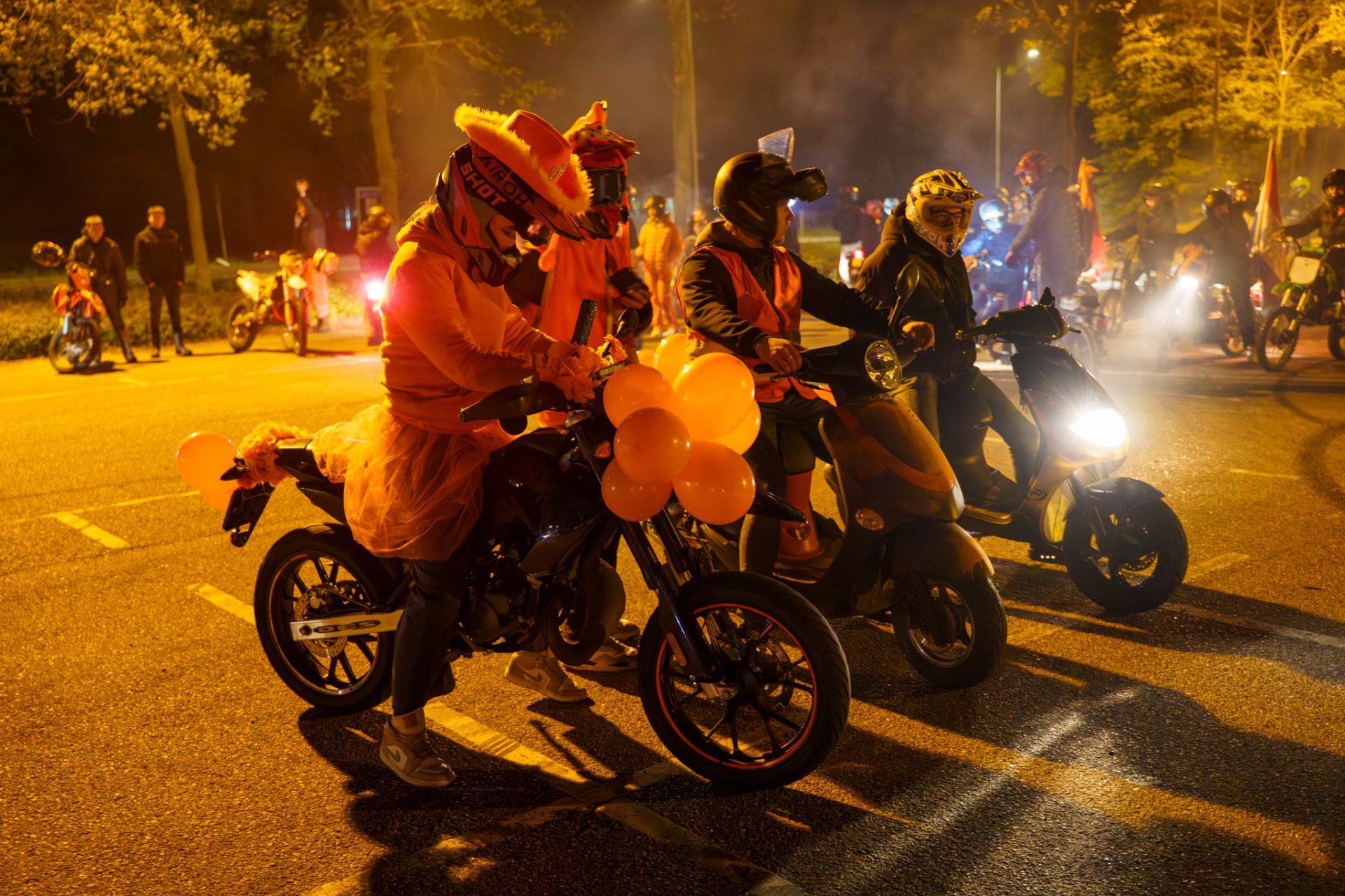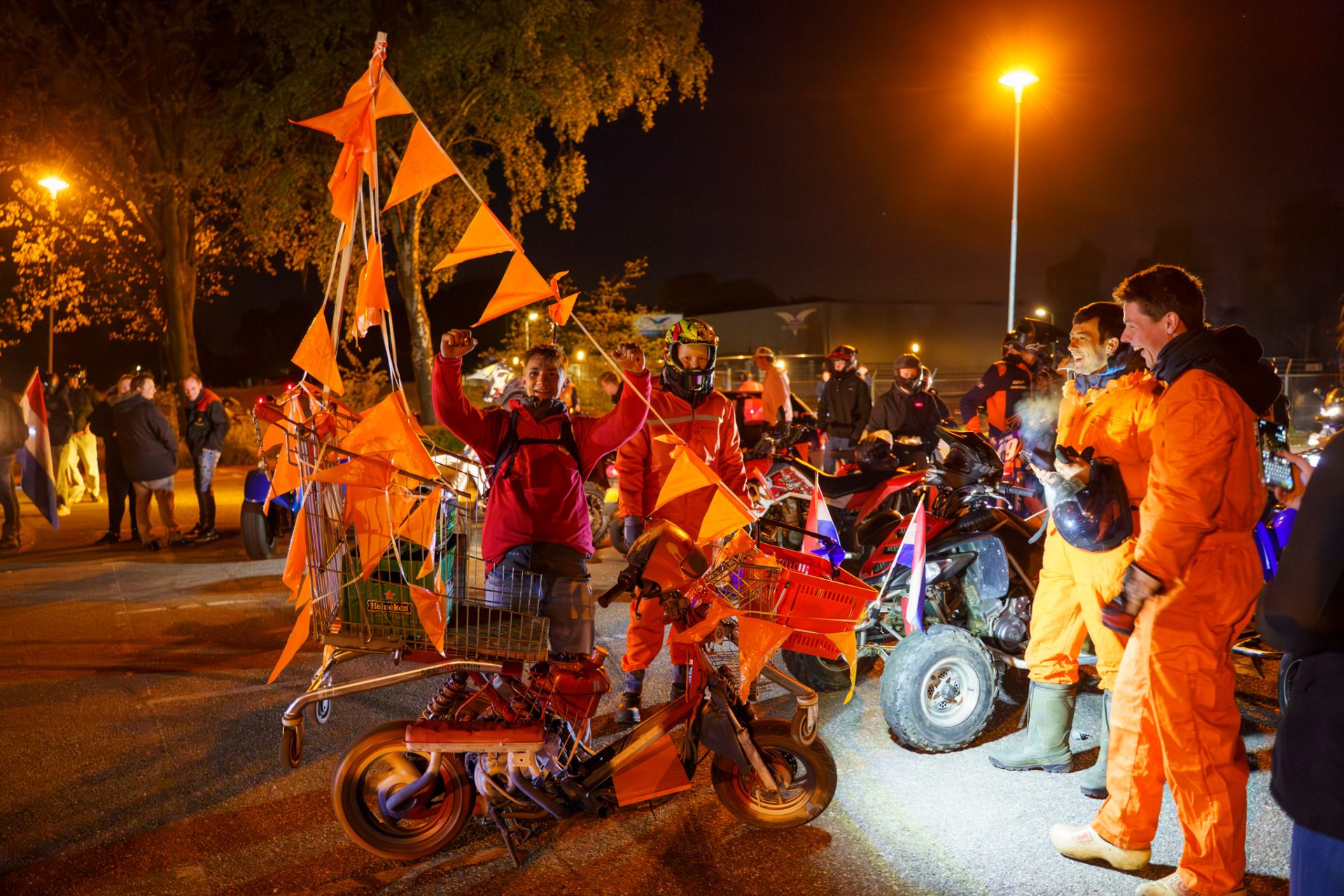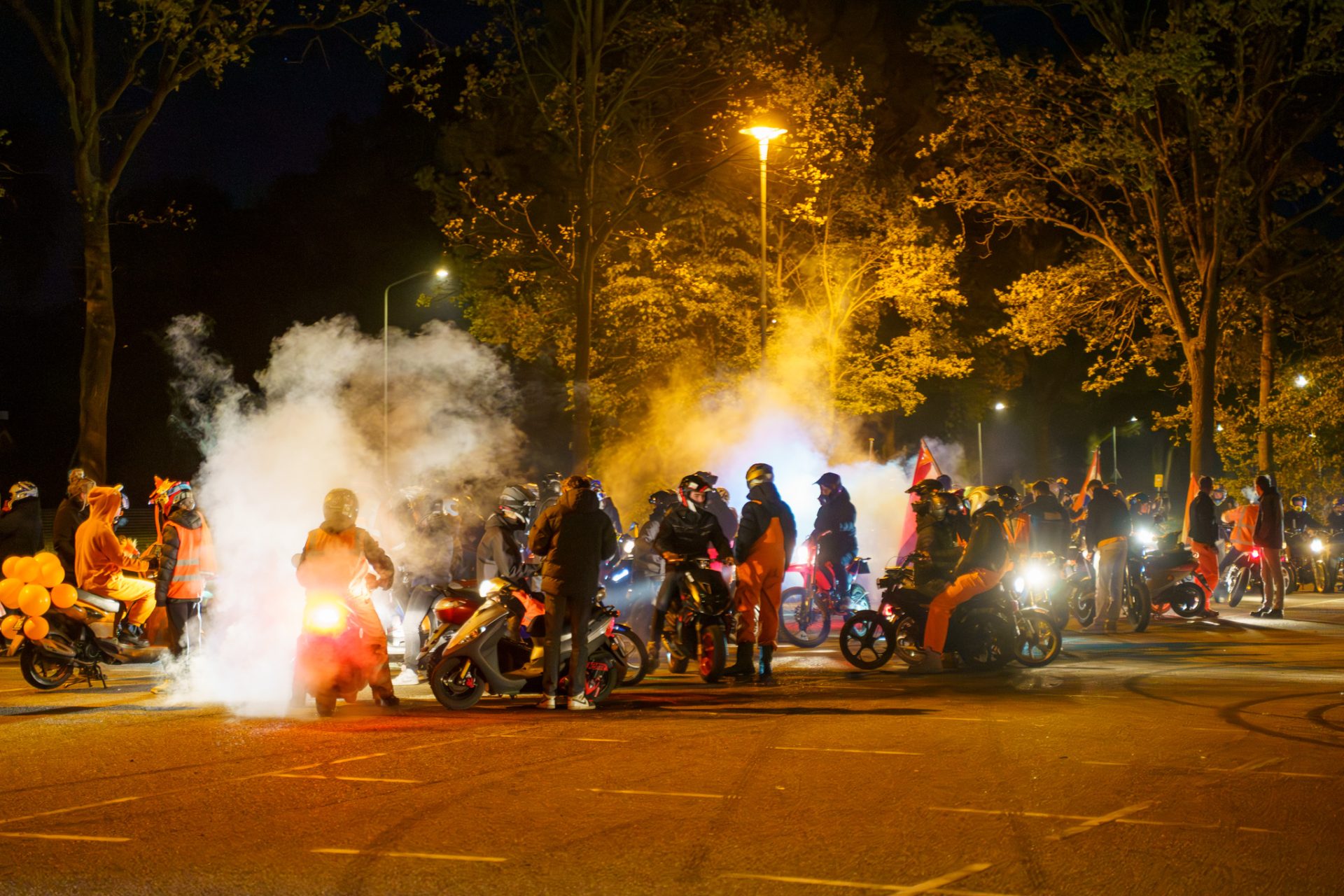 Veel voertuigen waren feestelijk in oranje versierd, maar sommige brommers waren aangepast om meer geluid te maken dan wettelijk is toegestaan. De politie hield het gebeuren op afstand, maar greep niet in, waardoor de stoet zonder problemen zijn route vervolgde.
