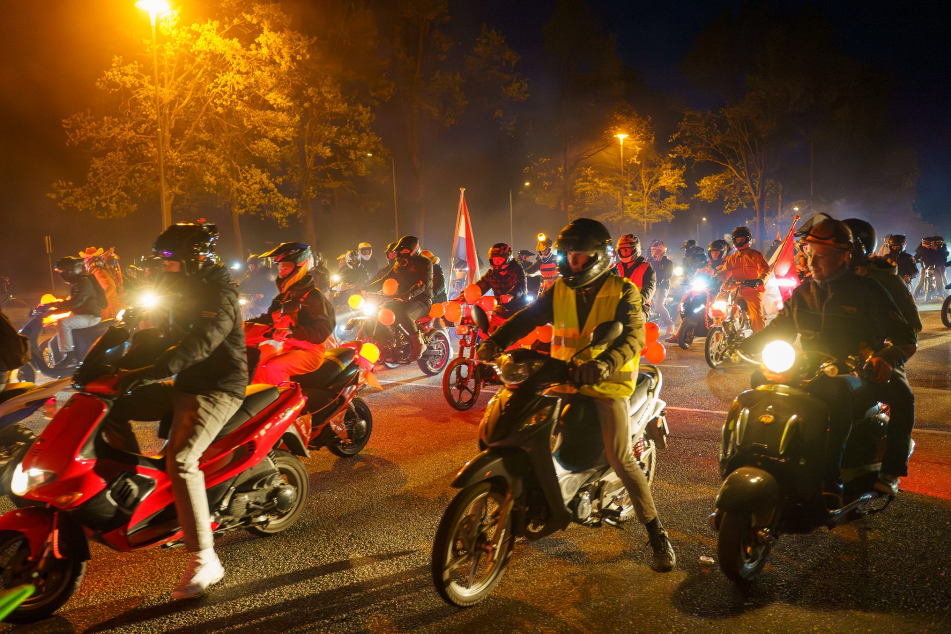 Rond 05:00 uur verzamelden honderden deelnemers met brommers, crossmotoren, quads en andere voertuigen op het parkeerterrein aan de Halvinkhuizerweg voor een gezamenlijke toertocht door verschillende wijken.
