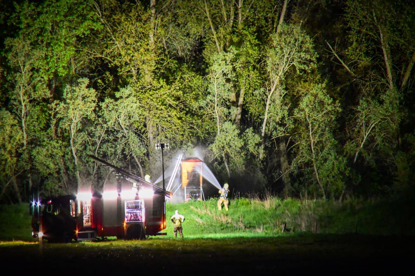 AERDT – Zondagavond heeft er brand gewoed in een zogenaamde jachthut aan de Geitenwaard in Aerdt. De brand wordt vermoedelijk aangestoken.