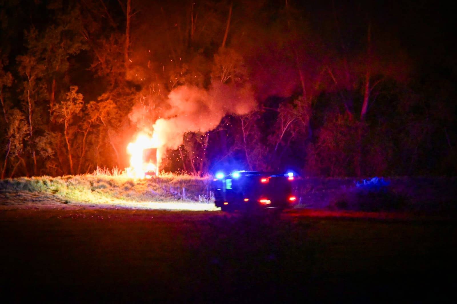 Jachthut volledig in brand, brandstichting niet uitgesloten