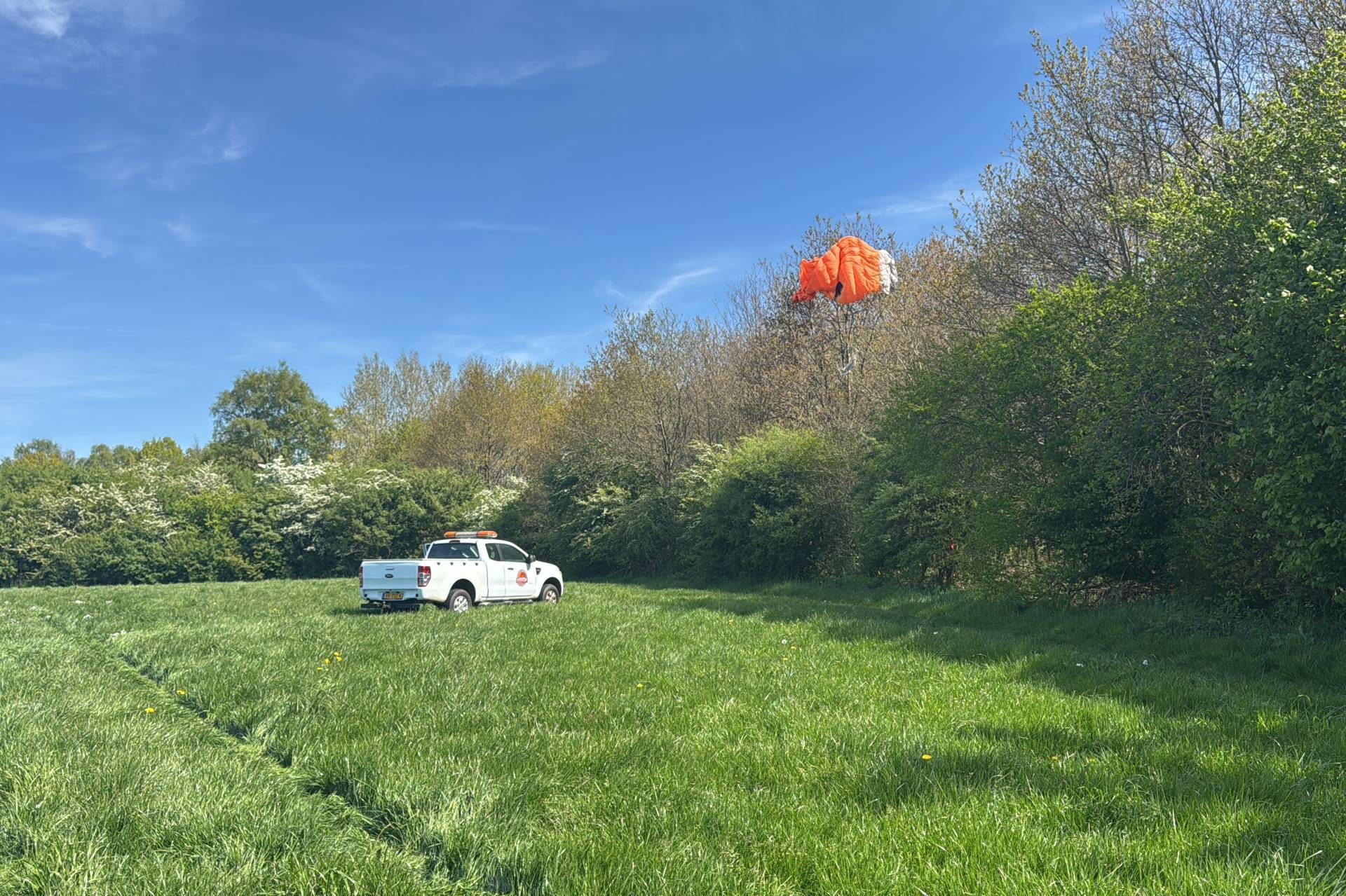 Een parachutiste was na een sprong in een boom terechtgekomen. Nog vóór aankomst van de brandweer wisten omwonenden haar met behulp van een ladder naar beneden te halen.