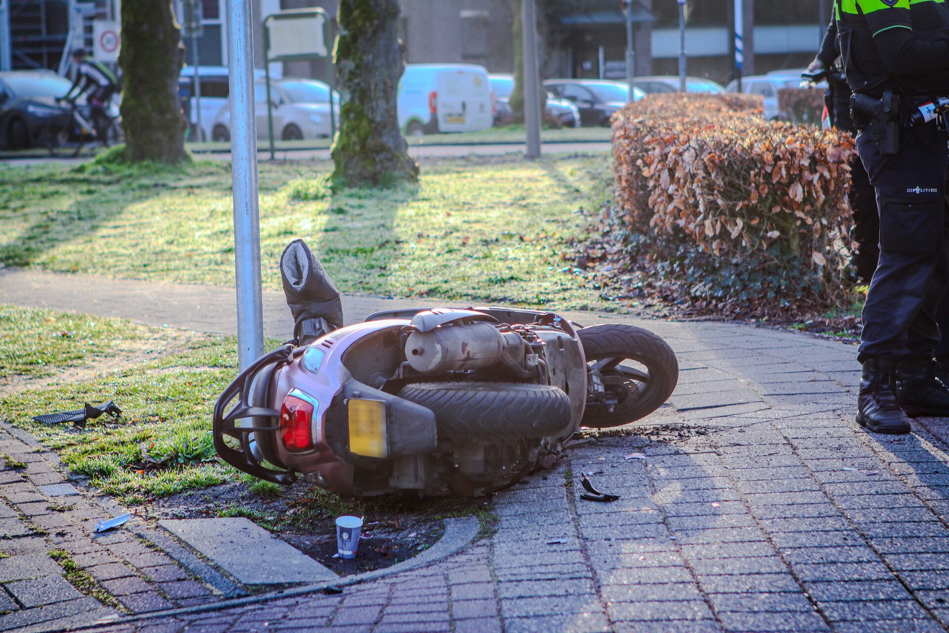 Het slachtoffer is voor controle naar het ziekenhuis gebracht. Zowel de auto als de scooter liepen schade op.