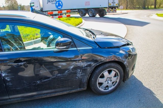 Twee auto’s botsen bij rotonde