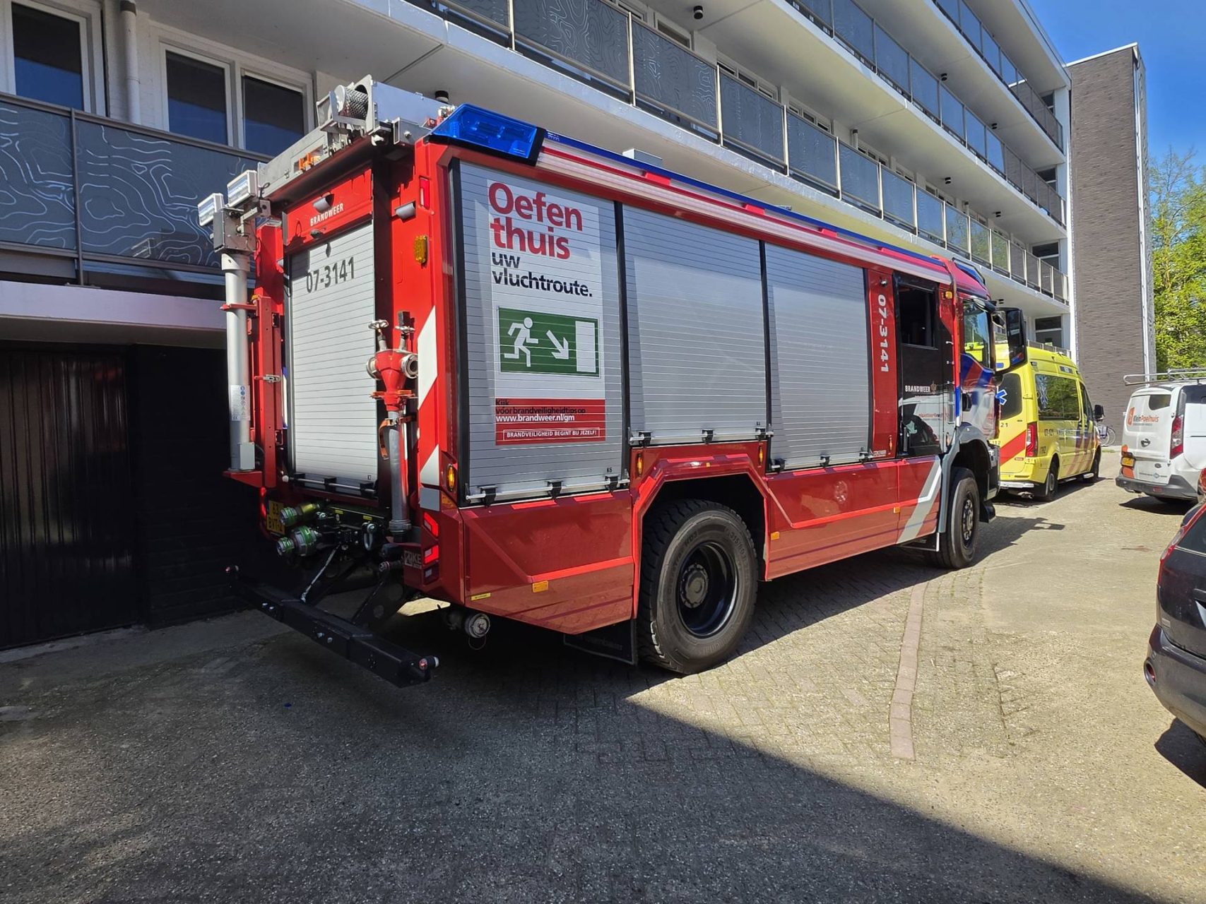 Beide bewoners zijn door ambulancepersoneel nagekeken en vervolgens doorverwezen naar de huisartsenpost (hap). Salvage is ook ter plaatse om de bewoners te ontzorgen.